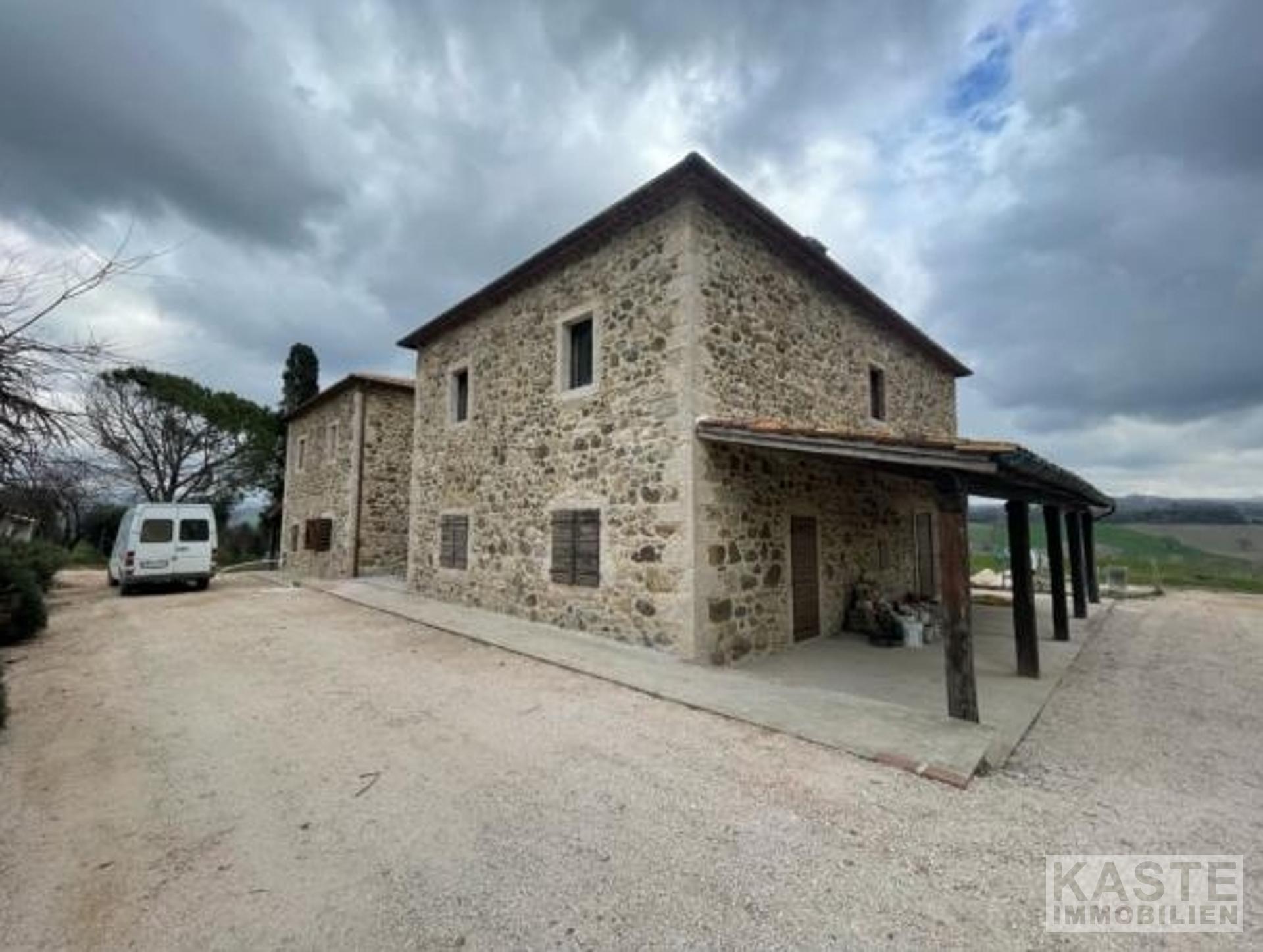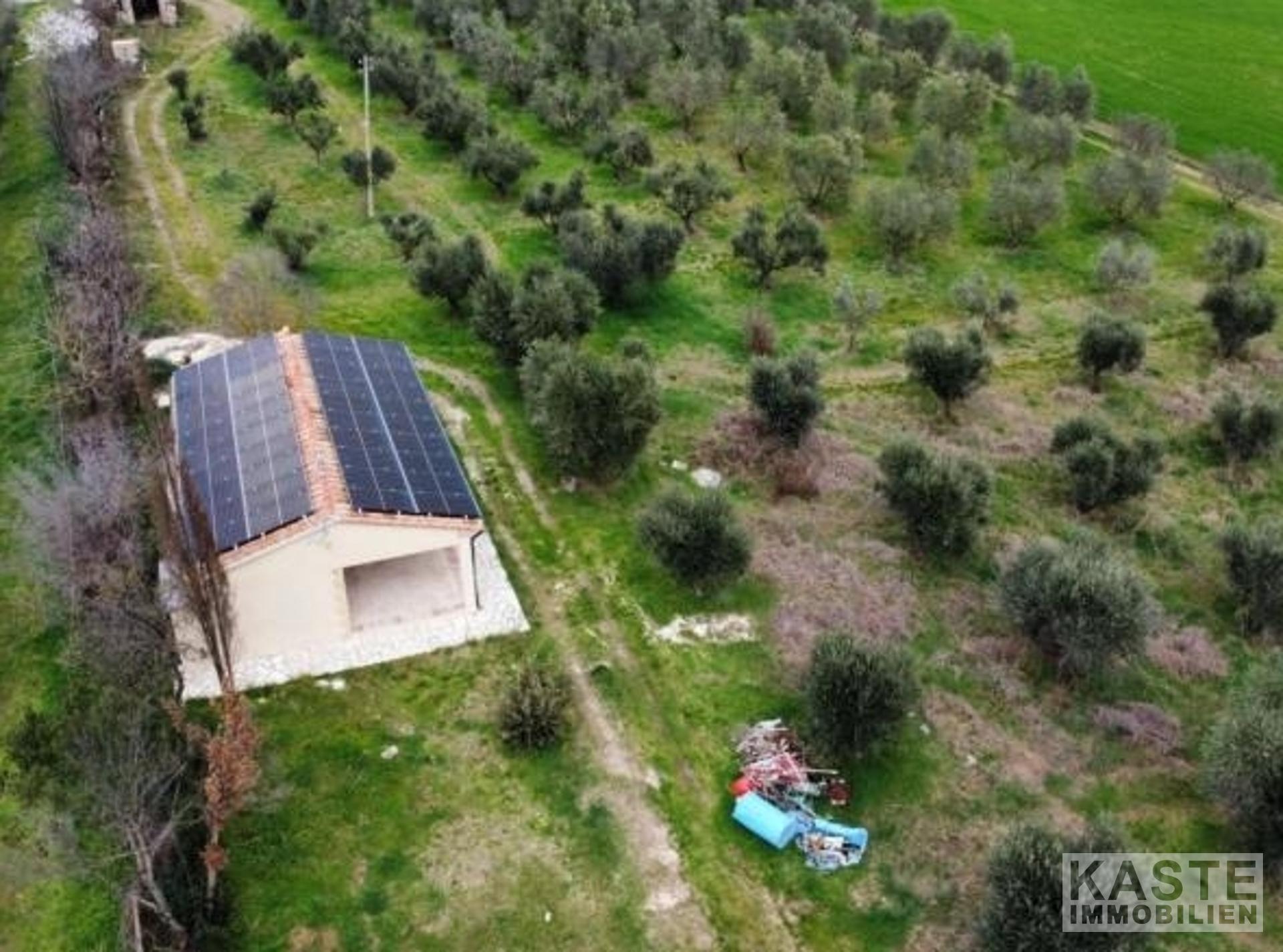 Das Bauernhaus besteht aus zwei miteinander verbundenen Gebäuden im Erdgeschoss und erstreckt sich über eine Gesamtfläche von 400 Quadratmetern. Zusätzlich bietet es eine Dependance mit Photovoltaikanlagen auf dem Dach, die weitere 50 Quadratmeter umfasst.