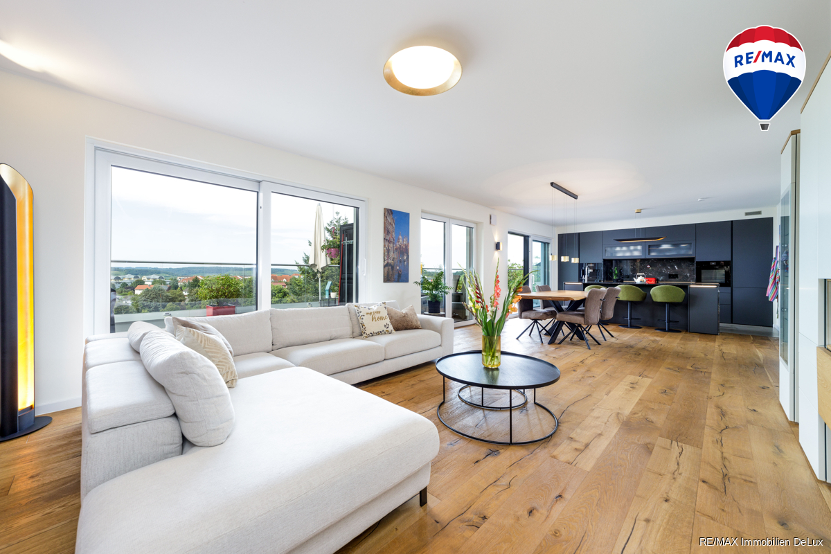 Zusätzlich sorgt eine moderne Lüftungsanlage für ein angenehmes Raumklima und elektrische Rollläden bieten Ihnen nicht nur Sichtschutz, sondern auch zusätzlichen Komfort. Möchten Sie ganz und gar einziehen? Die kompletten Möbel können für nur 40.000,00 € dazu erworben werden! Wenn Sie das Penthouse ohne Möbel erwerben möchten, sind lediglich die Küchenzeile und das Ankleidezimmer im Preis enthalten. Auf dem Grundstück stehen Ihnen drei Stellplätze zur Verfügung, die zusätzlich erworben werden können. Die monatlichen Nebenkosten betragen ca. 500,00 € und decken die Nutzung des Aufzugs sowie weitere Annehmlichkeiten. Zögern Sie nicht – diese einmalige Gelegenheit sollten Sie sich nicht entgehen lassen! Kontaktieren Sie uns noch heute für eine Besichtigung und überzeugen Sie sich selbst von diesem außergewöhnlichen Wohntraum! Erleben Sie bereits jetzt einen ersten Eindruck: [360-Grad-Besichtigung](https://tour.giraffe360.com/c0efa35e2693412c9ce9fb336f9ab4ad). Ihr neues Zuhause wartet auf Sie!