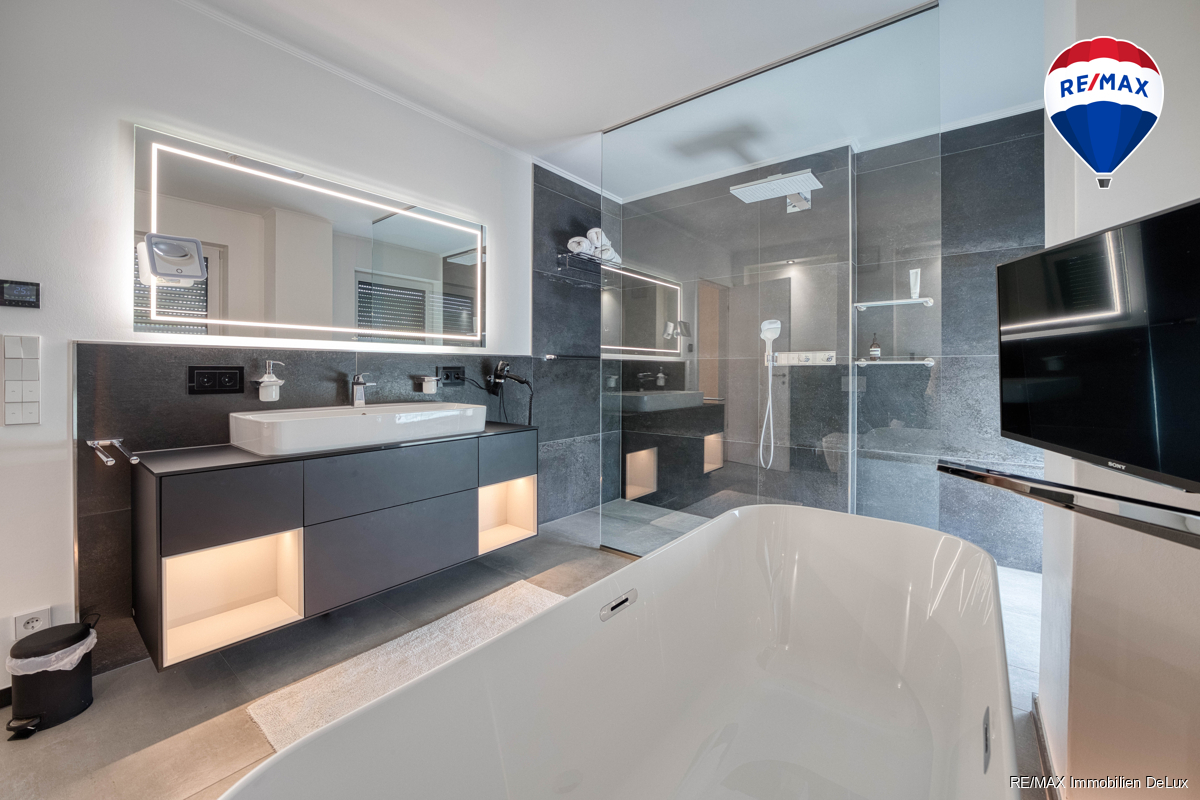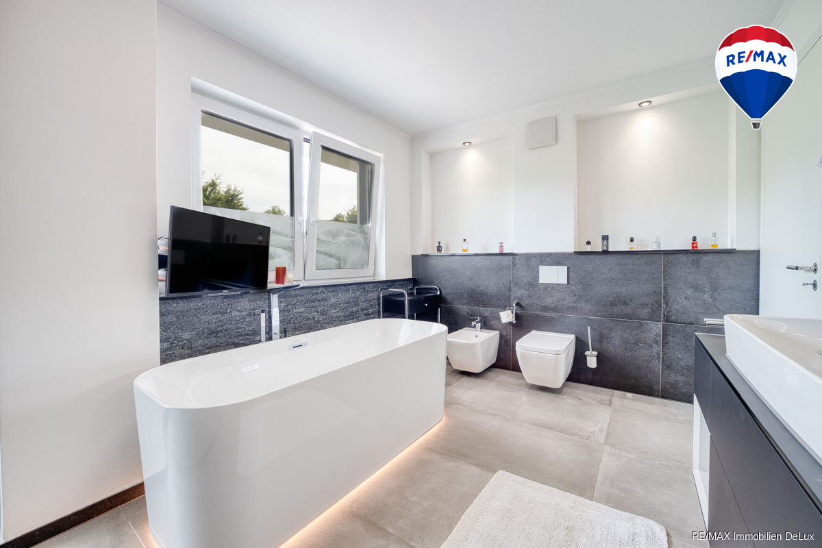 Willkommen in Ihrem neuen Zuhause! Entdecken Sie dieses traumhafte Penthouse in der besten Lage von Perl, wo Luxus, Komfort und Stil aufeinandertreffen. Mit ca. 164 m² Wohnfläche erleben Sie hier ein unvergleichliches Wohngefühl in einem eleganten Ambiente, das keine Wünsche offenlässt. Schon beim Betreten dieses einzigartigen Penthouses werden Sie von einem einladenden Flur begrüßt, der die perfekten Übergänge in verschiedene Bereiche schafft. Links gelangen Sie in ein großzügiges Schlafzimmer, das mit einem stilvollen Ankleidezimmer begeistert. Ein elegantes Badezimmer mit Badewanne sorgt für entspannende Momente und eine praktische Wäschekammer bietet Ihnen zusätzlichen Komfort – ideal für einen modernen Lebensstil. Geradeaus führt Sie der Weg in die beeindruckende offene Küche, die durch große Fenster lichtdurchflutet ist. Hier trifft moderne Technik auf zeitloses Design: Die hochwertige Miele-Ausstattung, die elegante Granitplatte, der Dampfgarer und der innovative Quooker Wasserhahn sowie die Abluft-Herdplatte schaffen eine kulinarische Oase. Kochen Sie in einem stilvollen Ambiente, das kaum Wünsche offenlässt und laden Sie Freunde zu unvergesslichen Dinnerpartys ein. Auf der rechten Seite des Flurs erwarten Sie zwei vielseitige Schlafzimmer, die sich perfekt als Gästezimmer oder Home-Office eignen. Ein modernes Badezimmer ergänzt diesen Bereich und macht das Penthouse ideal für Familien oder Besuche von Freunden.