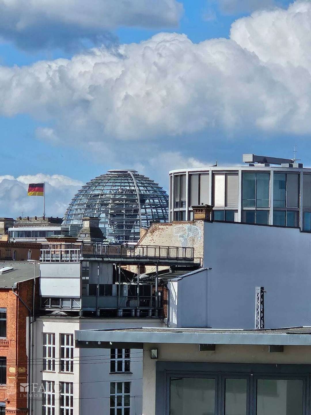 Im fünten OG befindet sich ein Büro, welches allerdings auch als kleineres Schlafzimmer genutzt werden kann. Ein besonderes Highlight ist der Balkon, der zum Entspannen im Freien einlädt. Hier können Sie den Blick über die Dächer der Stadt genießen, mit direkten Blick auf den Berliner Reichstag und die Charité.
