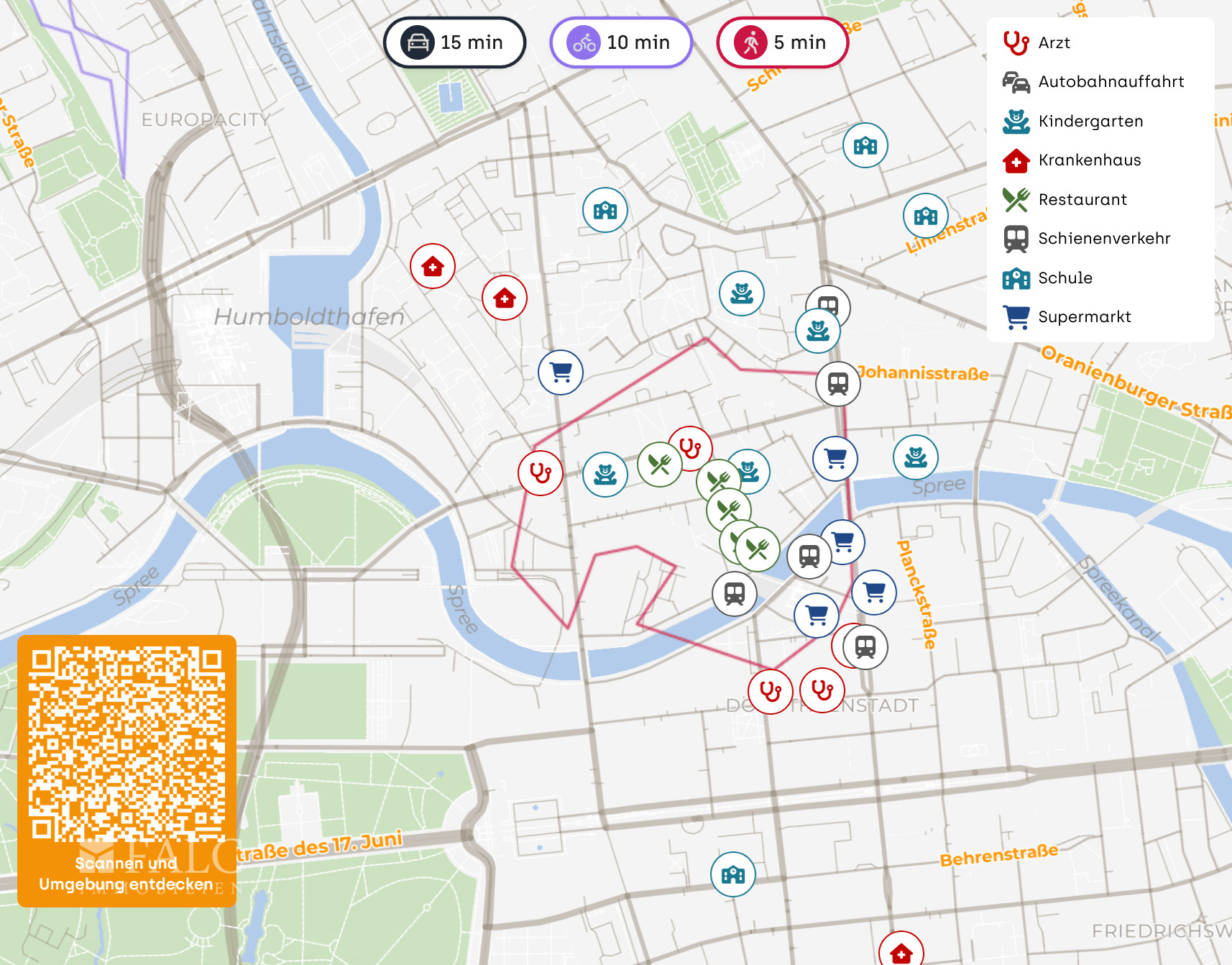 Nur wenige Gehminuten entfernt befinden sich der Berliner Reichstag, der Friedrichstdtpalast und der idyllische Tiergarten, die zu entspannten Spaziergängen oder sportlichen Aktivitäten einladen. Die Charité, eines der renommiertesten Krankenhäuser Europas, liegt ebenfalls in unmittelbarer Nähe, was die Lage besonders attraktiv macht.