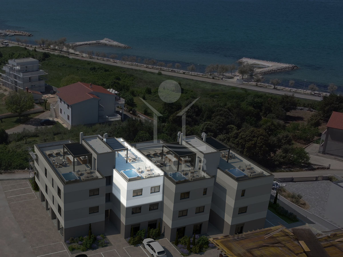 In Zaton, einem charmanten Ortsteil bei Nin, entsteht ein hochwertiges Neubauprojekt, nur rund 100 Meter vom Meer entfernt. Die Anlage fügt sich harmonisch in das mediterrane Umfeld ein und eröffnet dank ihrer erhöhten Position einen weiten Blick auf die vorgelagerten Inseln und die Bucht von Zadar. Die Nähe zur Küste und die ruhige Nachbarschaft verleihen dem Ort eine Atmosphäre von Beständigkeit und Exklusivität.