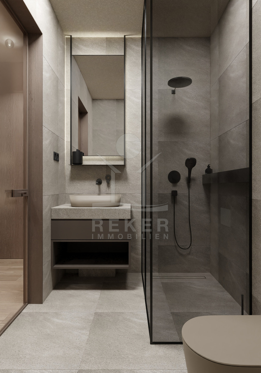 Das Gebäude ist Teil einer edlen, geschlossenen Wohnanlage mit fünf Häusern. Sie erinnert an ein kleines Dorf. Zwei separate Treppenhäuser strukturieren die neun Wohnungen klar und sorgen für angenehme Privatsphäre. Jede Einheit verfügt über zwei Außenstellplätze und einen eigenen Abstellraum, praktisch und komfortabel. Gepflegte Grünflächen rahmen das Ensemble ein und unterstreichen den ruhigen, hochwertigen Charakter. Die Fertigstellung ist für das Frühjahr 2026 vorgesehen.