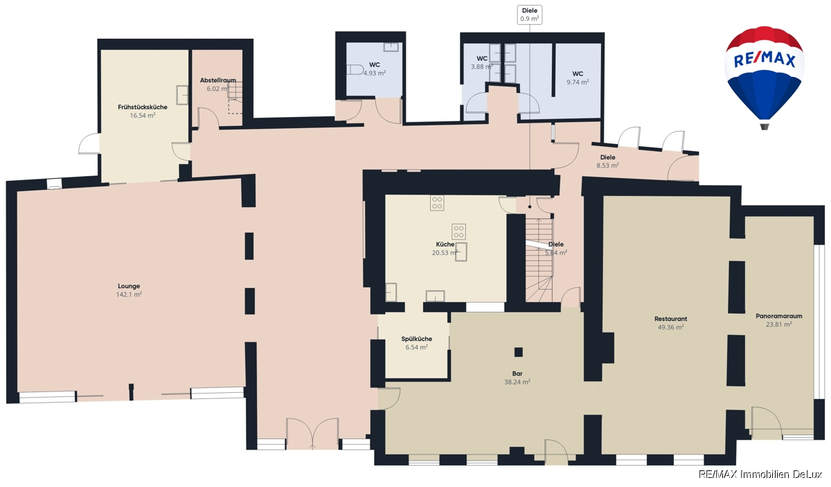 Obwohl das Gebäude zuletzt als Restaurant und Hotel genutzt wurde, ist es nicht auf diese Nutzung festgelegt.