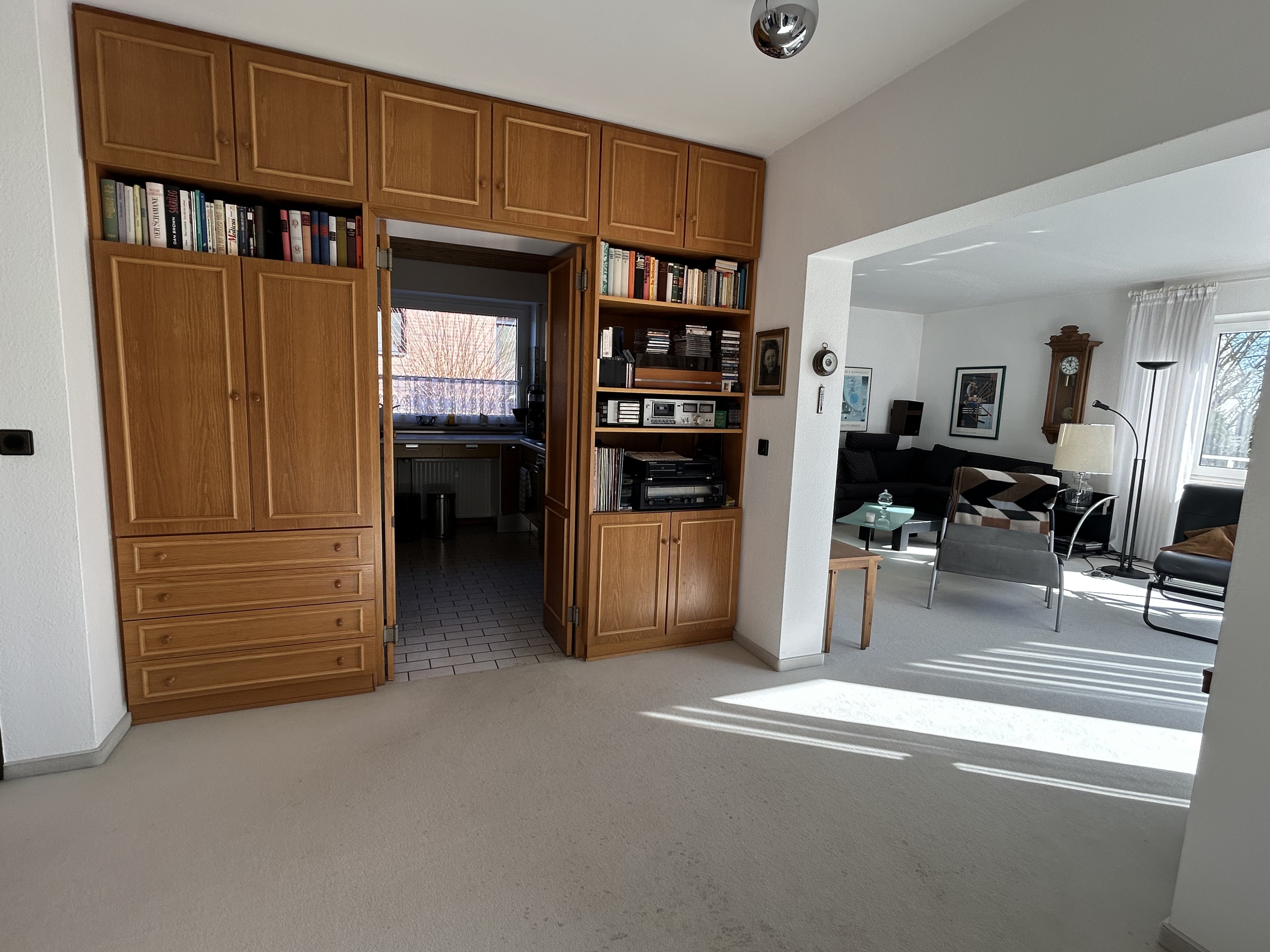 Im Untergeschoss befindet sich eine ca. 59 m² große Einliegerwohnung, die aktuell vermietet ist und ab dem 01.05. zur freien Verfügung steht. Sie verfügt über zwei Zimmer, eine Küche sowie ein Badezimmer. Besonders reizvoll ist der herrliche Blick auf die sonnige Südterrasse und in den liebevoll angelegten Garten. Ob zur Vermietung, als Mehrgenerationenlösung oder für erwachsene Kinder – hier eröffnen sich zahlreiche Nutzungsperspektiven.