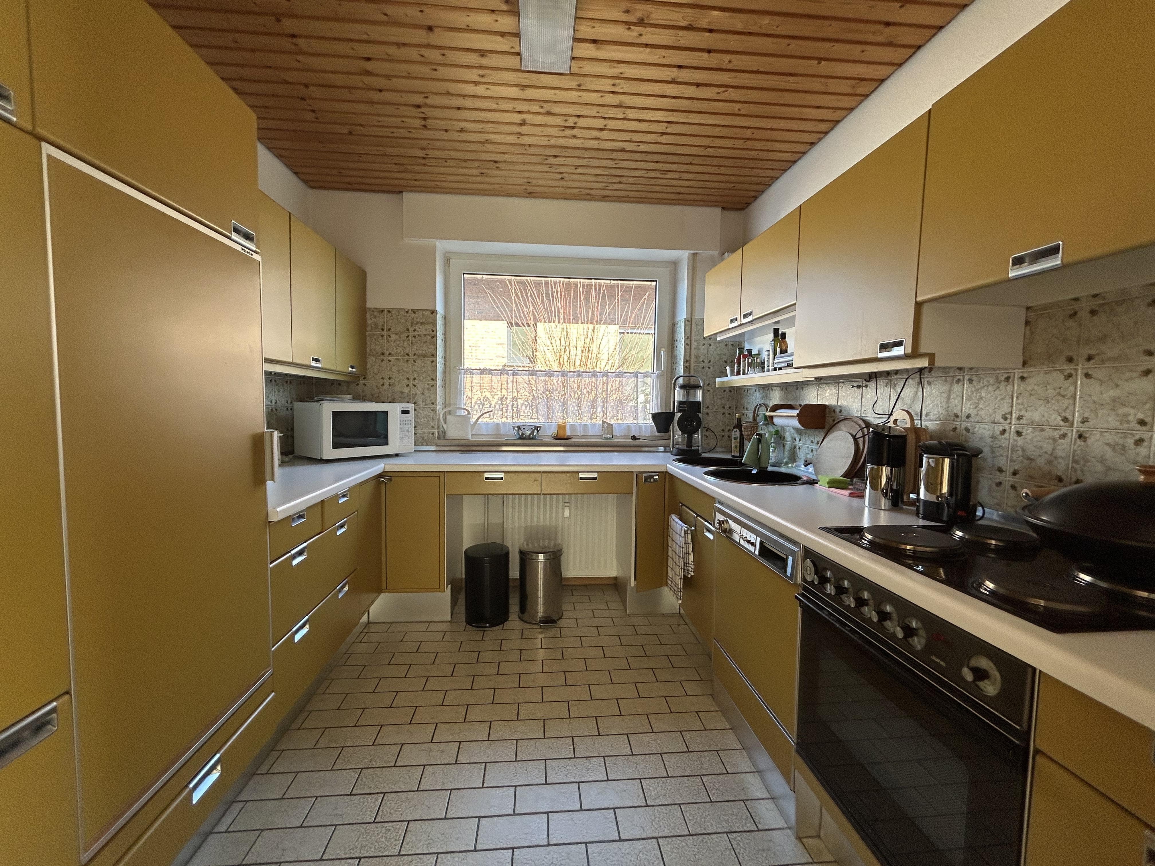 Die angrenzende Küche bietet kurze Wege und vielfältige Gestaltungsmöglichkeiten. Drei gut geschnittene Schlafzimmer eröffnen ausreichend Raum für Familie, Gäste oder Homeoffice. Ein Badezimmer sowie ein separates Gäste-WC runden das Raumangebot auf dieser Ebene ab.