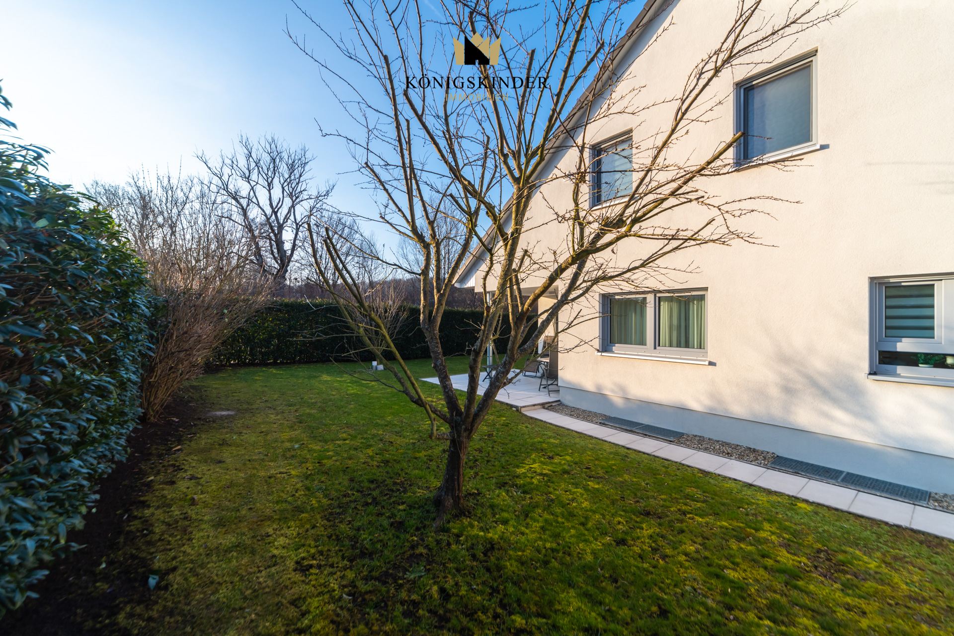 Exklusives Wohnen in vollendeter Harmonie mit der Natur – barrierefrei, modern, außergewöhnlich In privilegierter, unverbaubarer Lage am Rand des Naturschutzgebietes „Krummbach“ eröffnet sich ein Wohnensemble, das höchsten Ansprüchen gerecht wird. Dieses neuwertige, architektonisch klare Einfamilienhaus auf einem 539 m² großen Grundstück wurde in hochwertiger „Weißer-Wanne“-Bauweise errichtet und vereint zeitlose Eleganz, nachhaltige Technik und komfortables, nahezu barrierefreies Wohnen auf höchstem Niveau. Der großzügige Garten wirkt wie eine private Parklandschaft – fließend eingebettet in das angrenzende Naturschutzgebiet. Weitläufige Grünflächen, absolute Ruhe und ein unverbaubarer Blick schaffen ein Lebensgefühl, das jeden Tag an einen exklusiven Rückzugsort erinnert. Großzügigkeit & Barrierefreiheit – Wohnen ohne Kompromisse Das Erdgeschoss bietet mit über 90 m² ein außergewöhnlich komfortables Wohnkonzept und ermöglicht barrierearmes bis nahezu barrierefreies Leben auf einer Ebene. Breite Bewegungsflächen, ebenerdige Zugänge sowie ein durchdachtes Raumlayout schaffen maximale Freiheit und Sicherheit. Der repräsentative Wohn- und Essbereich mit ca. 30 m² bildet das Herzstück des Hauses. Großzügige Fensterfronten lassen Licht und Natur in jeden Winkel strömen und öffnen sich direkt zur sonnigen Terrasse und in den traumhaften Garten – ein fließender Übergang zwischen Innen- und Außenraum. Zwei weitläufige Zimmer auf dieser Ebene eignen sich ideal als Schlaf-, Gäste- oder Arbeitszimmer. Ergänzt wird das Raumangebot durch ein stilvolles Gäste-WC mit Waschmaschinenanschluss sowie ein luxuriös ausgestattetes Duschbad mit ebenerdiger Dusche, Bidet, WC, hochwertigem Waschtisch und Handtuchwärmer – Komfort, der keine Wünsche offenlässt. Die exklusive Einbauküche aus dem renommierten Küchenstudio „Meine Küche“ verbindet Design und Funktionalität auf höchstem Niveau und wird zum Mittelpunkt anspruchsvoller Koch- und Genussmomente. Über einen komfortablen Treppenlift gelangen Sie ins Obergeschoss, das ebenfalls durch Großzügigkeit und Licht überzeugt. Die elegante Empore mit elektrischem Kaminofen lädt zu ruhigen Lesestunden und entspannten Auszeiten ein. Hier befinden sich das Elternschlafzimmer, ein Kinder- oder Gästezimmer, ein separater Ankleideraum sowie ein außergewöhnlich großzügiges Tageslichtbad mit Badewanne, ebenerdiger Dusche, WC, Waschtisch und Handtuchwärmer – ein privater Wellnessbereich mit viel Licht und Raum. Ein besonderes Juwel ist die Loggia mit unverbaubarem Blick ins Grün – ein Ort der Ruhe, der täglich Urlaubsgefühle weckt. Modernste Haustechnik unterstreicht den gehobenen Anspruch dieser Immobilie: 3-fach verglaste Fenster (innen weiß, außen lichtgrau), überwiegend elektrische Rollläden im Erdgeschoss sowie eine effiziente Luft-Wasser-Wärmepumpe sorgen für Nachhaltigkeit, Wohnkomfort und niedrige Betriebskosten. Kabel- und Telefonanschlüsse in sämtlichen Räumen ermöglichen zeitgemäßes Arbeiten und Leben. Im Untergeschoss stehen Ihnen ca. 95 m² hochwertig nutzbare Fläche zur Verfügung – aufgeteilt in drei großzügige Räume und einen Vorraum. Ob privater Fitnessbereich, Hobbyatelier oder stilvolles Home-Spa: Ihrer Individualität sind keine Grenzen gesetzt. Zwei geräumige Garagen – eine davon mit direktem Gartenzugang – sowie vier weitere Stellplätze im Hof runden dieses exklusive Angebot ab. Ein Zuhause für Menschen mit Anspruch. Barrierefrei gedacht. Luxuriös gelebt. In vollkommener Verbindung mit der Natur!