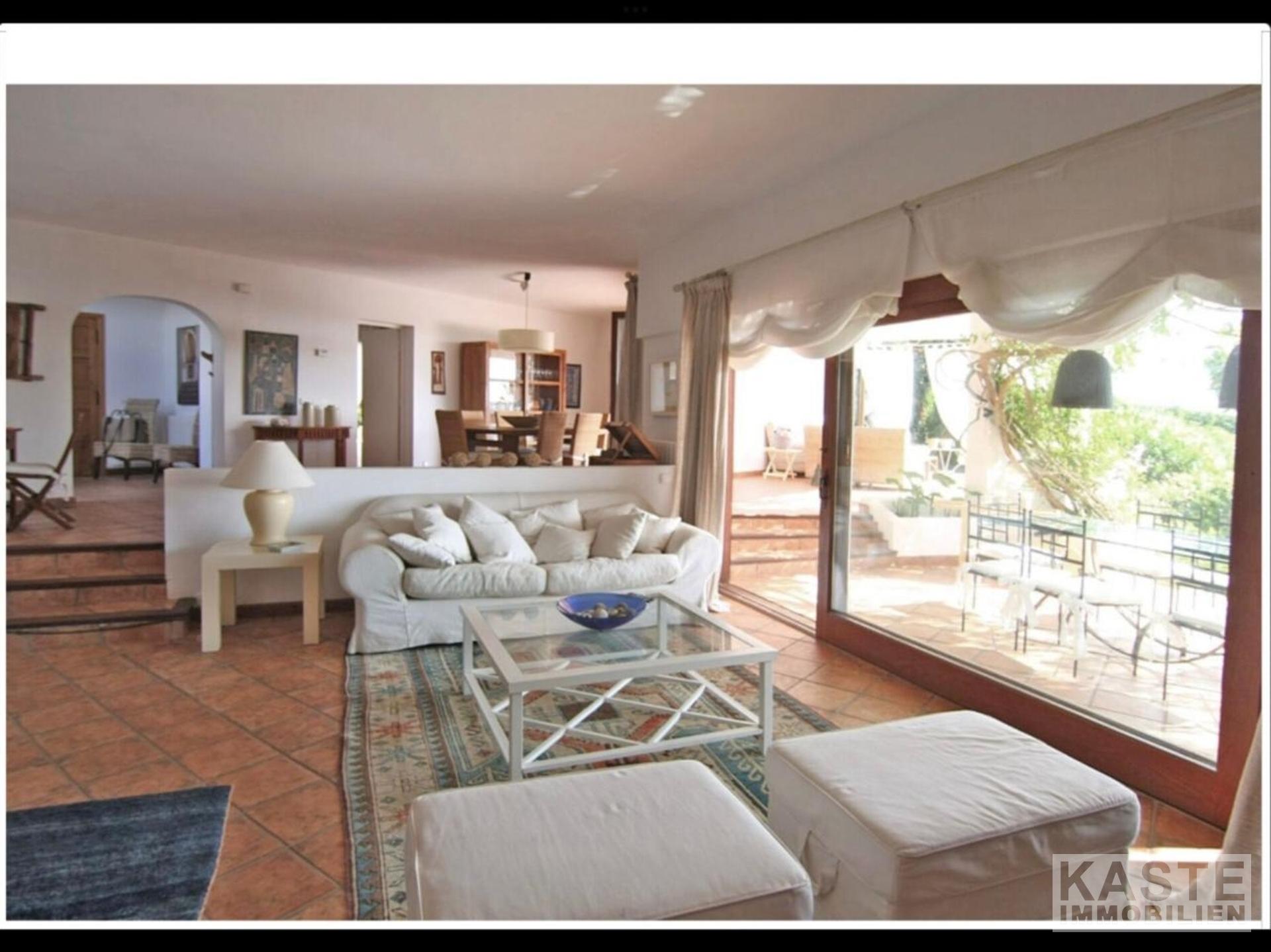Das Hauptschlafzimmer des Hauses bietet Meerblick und Zugang zu den gemeinschaftlich genutzten Bereichen, darunter der Haupteingang, das Wohnzimmer, das Esszimmer, die Küche und die Hauptterrasse. Auf der Terrasse befindet sich ein herrlicher Sofabereich mit Blick auf die Bucht sowie ein Essbereich im Freien. Der Pool ist beleuchtet und der liebevoll gestaltete Garten umfasst einen Pinienwald, Yuccas, Hibiskus, Oleander, Rosmarin, Palmen und vieles mehr.
