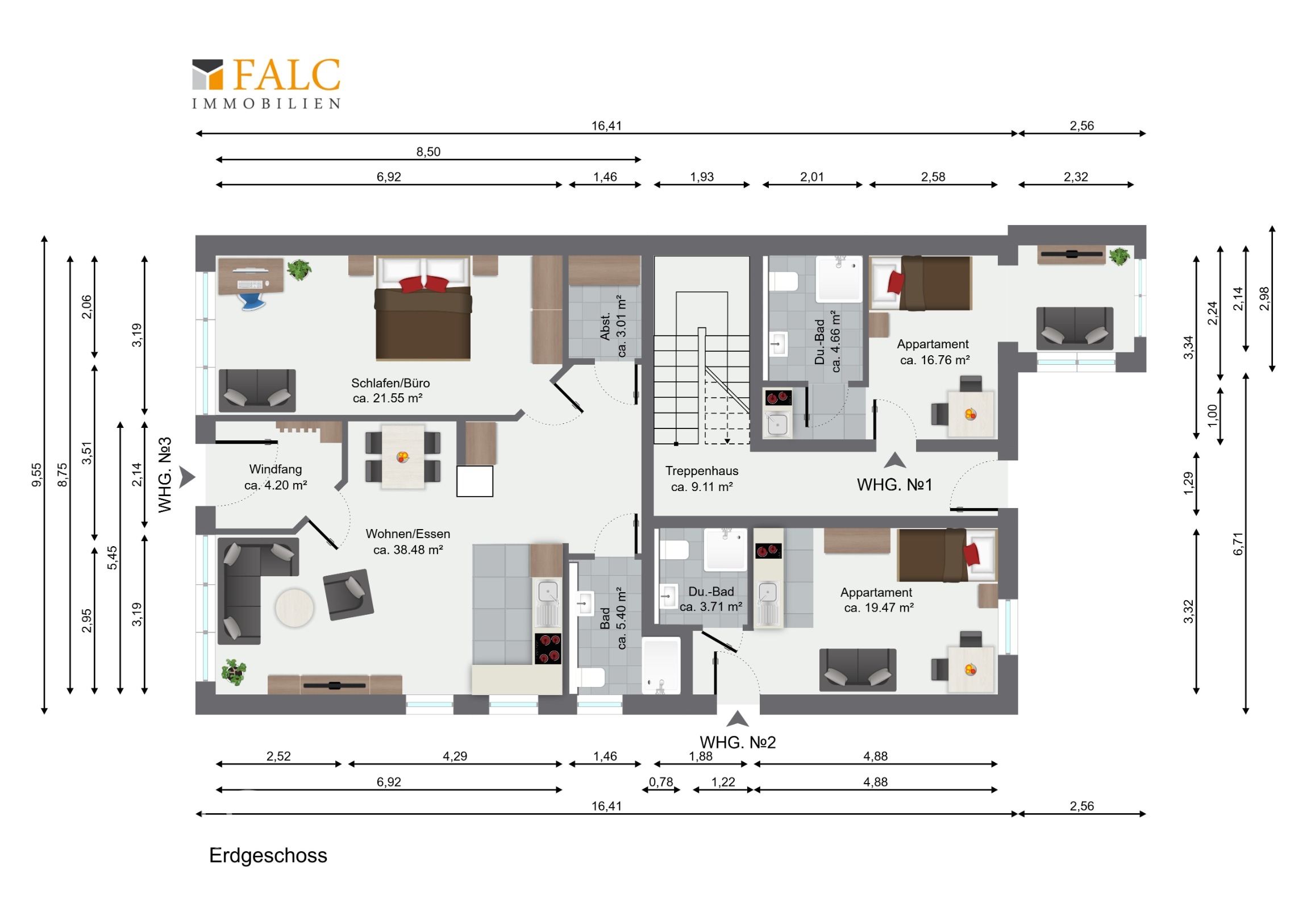 Die vermietbare Wohnfläche beträgt ca. 335 m² und verteilt sich auf 5 x Wohneinheiten.