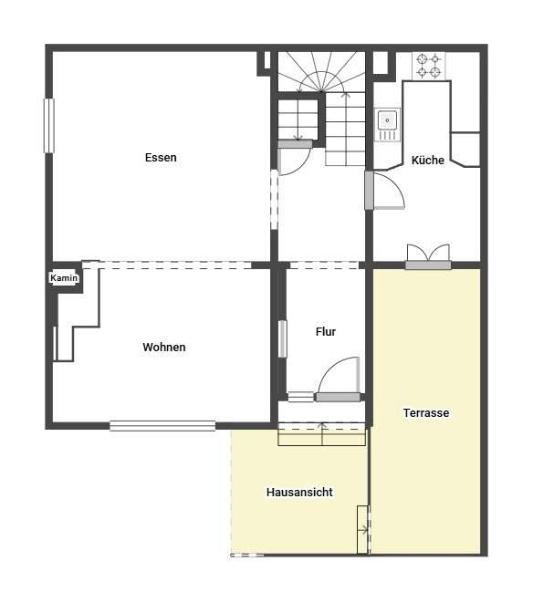 Im Erdgeschoss befindet sich ein großzügiger Wohn- und Essbereich, der viel Platz für gemeinsame Stunden mit Familie und Freunden bietet. Die angrenzende Küche verfügt über einen direkten Zugang zur Terrasse, wodurch sich das Leben besonders in den warmen Monaten nach draußen verlagern lässt.