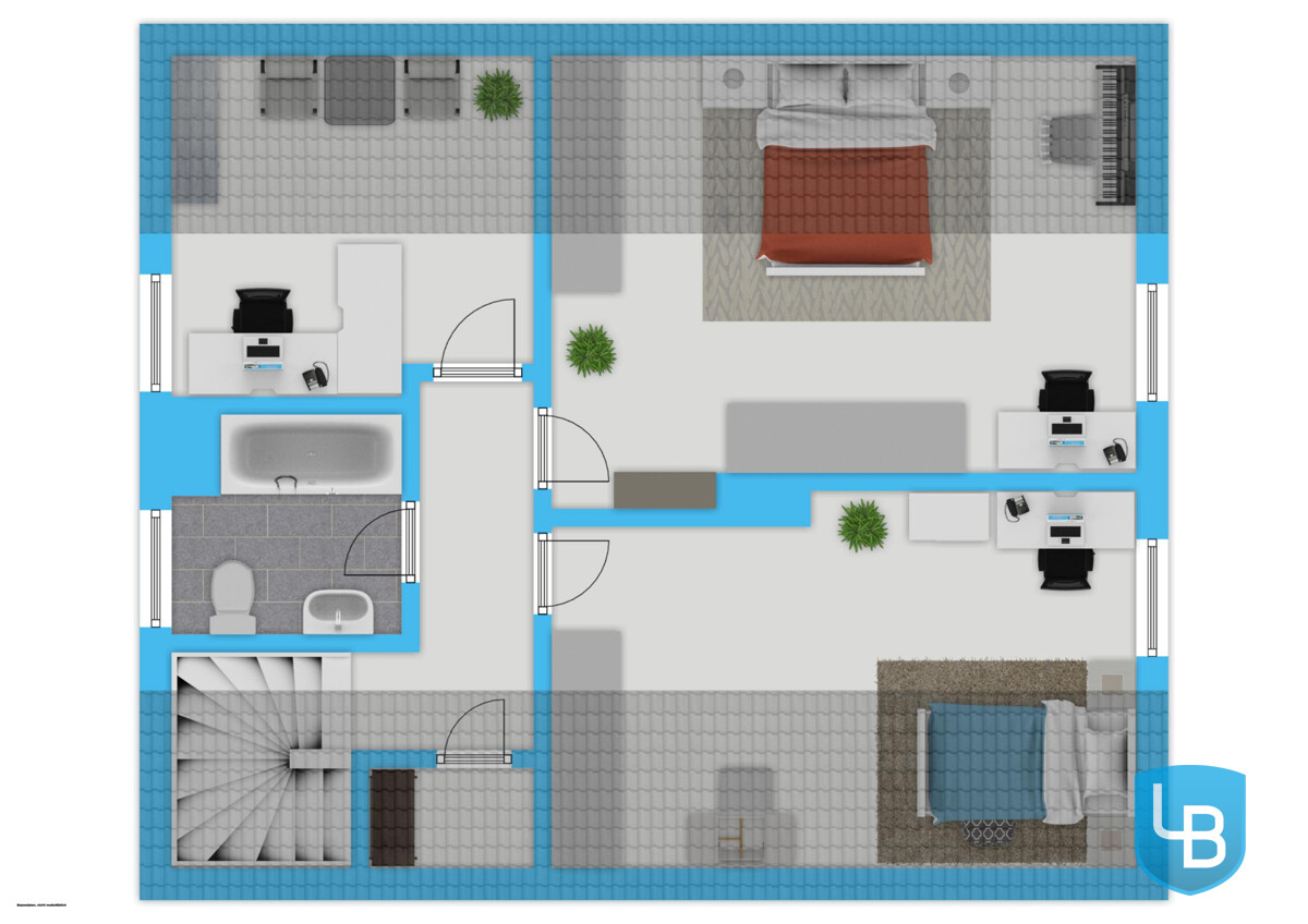Das Dachgeschoss umfasst drei weitere Zimmer, die reichlich Raum für individuelle Wohnideen lassen – ob Kinderzimmer, Arbeitsbereich oder persönliches Hobbyrefugium. Ein Badezimmer mit Badewanne sowie ein praktischer Abstellraum vervollständigen diese Etage. Zusätzlich steht ein Spitzboden für Stauraum zur Verfügung.