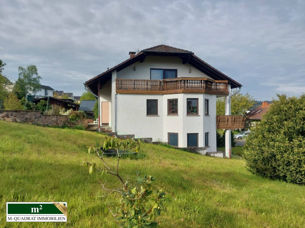 Die Immobilie verfügt über zwei Eingänge: Souterraineingang: Sie erreichen die innenliegende Garage, Vorratslager, HWS-Raum mit Dusche, WC separat, Flur, Heizraum, Tankraum, Hausanschlussraum; weiter geht es zur mittleren Ebene, die Sie sowohl über die Innen-Treppe, als auch von außen über die Haupteingangstür erreichen. Hier öffnet sich im EG ein großzügiger Eingangsbereich. Sie finden ein Gästebad, das Familienbad, ein Schlafzimmer, die Küche mit Speisekammer vor. Der großzügige Balkon wird vom Wohn-Esszimmer und Schlafzimmer erreicht . Das Wohnzimmer verfügt über einen imposanten Kachelofen, der neben der Zentralheizung eine wohlige Wärme ausstrahlt. Sowohl in den Bädern, der Diele und im Wohn-Ess-Zimmer wurde der Fußboden mit einem hochwertigem Granitboden versehen. Eine Besonderheit strahlt von der Wohnzimmer-und Dielen-Decke aus, diese sind mit kreativen Holzelementen und Beleuchtung versehen. Über die offene Treppe,- die Treppenstufen sind auch hier aus hochwertigem Granit gefertigt, erreichen Sie die Diele im OG, diese führt zu einem Arbeitszimmer mit schönem Parkettfußboden; ein Duschbad und ein weiteres Zimmer schließen sich an. Die Loggia mit Weitblick ergänzt das schöne Wohngefühl. Zusätzlich ist über eine Bodentreppe ein Dachboden zu erreichen.Zurück zum Eingangsbereich, von dort gelangen wir hinaus zur Terrasse, gehen über den Rasen, kommen zum Gartenhaus und erreichen den Garten mit angelegten Gartenteich.