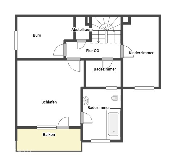 Im Obergeschoss stehen drei geräumige Schlafzimmer zur Verfügung, die flexibel genutzt werden können – sei es als Elternschlafzimmer, Kinderzimmer oder Homeoffice. Zudem gibt es hier zwei Bäder, die für ausreichend Komfort sorgen. Ein Balkon lädt zum Verweilen im Freien ein, und ein praktischer Abstellraum bietet zusätzlichen Stauraum.