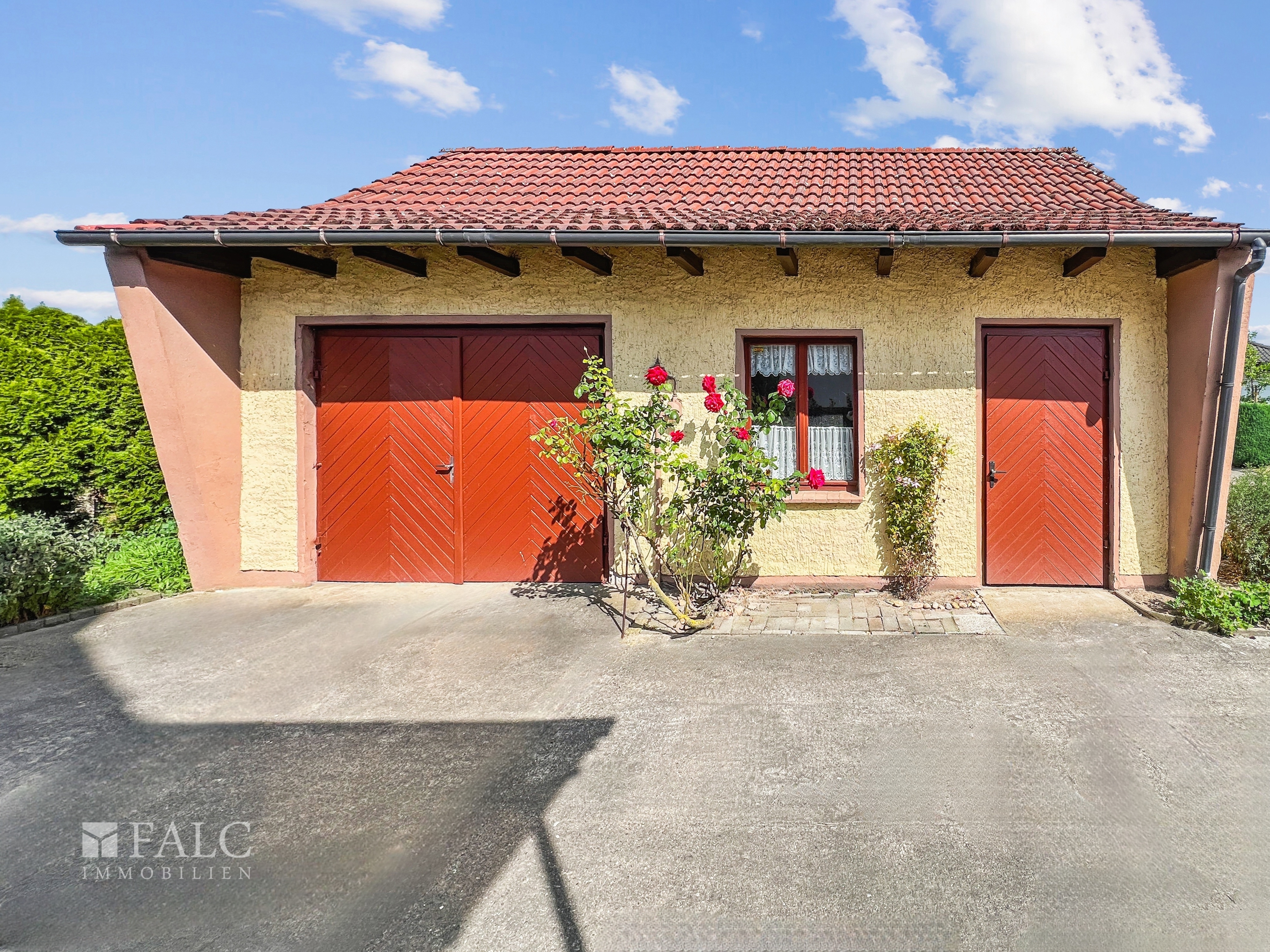 - überdachte Terrasse - voll unerkellert - Doppelgarage - Rolläden an allen Fenstern, im Erdgeschoss elektrisch - Öl Heizung von 1993 mit 4 Tanks á 1.000 Liter - Fenster aus dem Jahr 1993