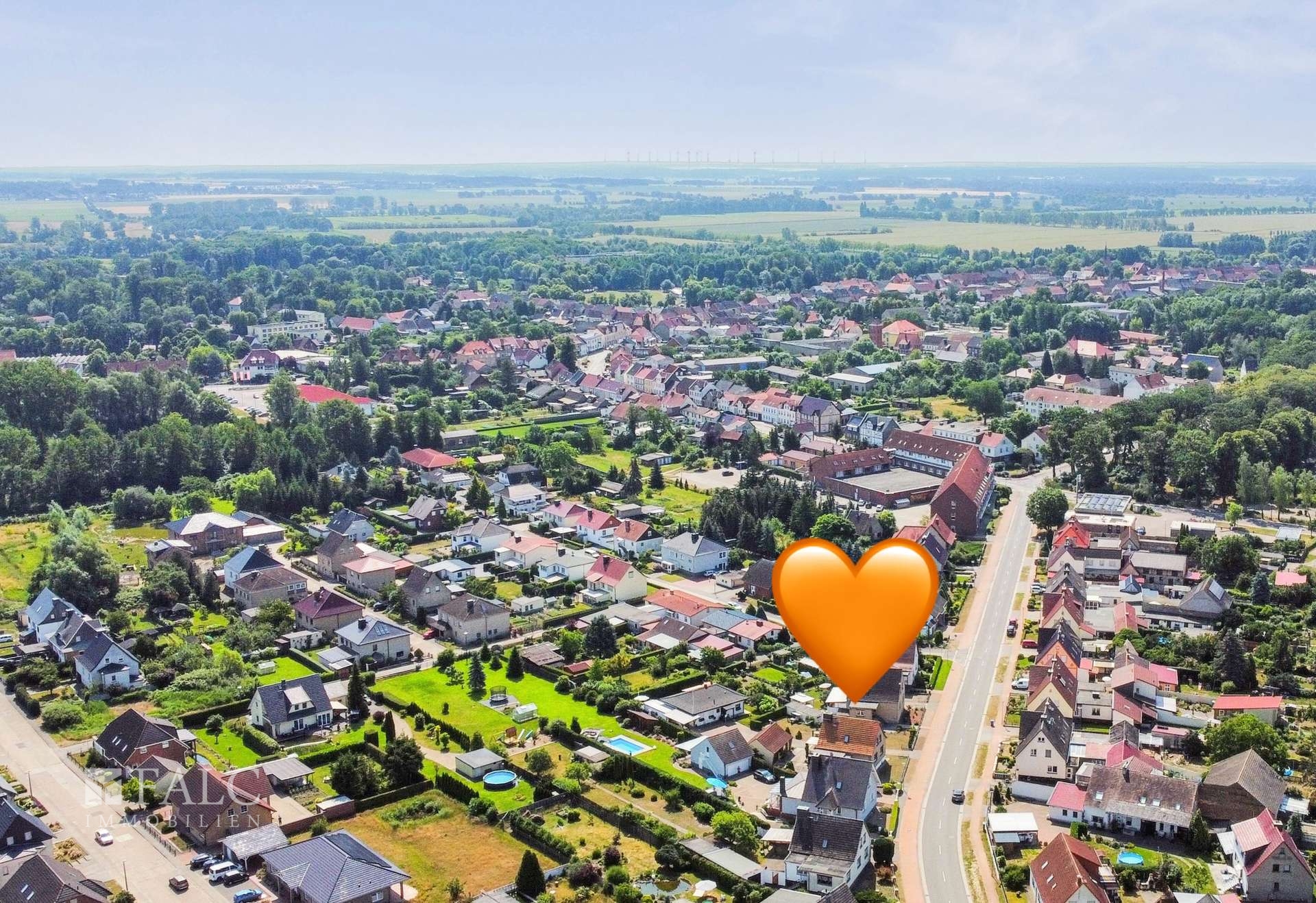 Die Einheitsgemeinde Stadt Kalbe (Milde) – Natur pur! Die Kurstadt Kalbe ist ein staatlich anerkannter Erholungsort mitten im Herzen der Altmark, er lädt förmlich zu einer Auszeit ein – fernab vom Großstadtstress. Auf halber Strecke zwischen Hamburg und Leipzig prägt ein Flüsschen die Landschaft, das seinen Namen zu Recht verdient: die Milde. Sie hat ein sanftmütiges Fleckchen Erde mit Wiesen und Wäldern geformt. Das ruhige Städtchen wird von der Milde regelrecht umarmt. Sie hat Kalbe den Beinamen „Stadt der 100 Brücken“ verliehen. Der Kurort mit seinen ca. 7.400 Einwohnern liegt im Altmarkkreis Salzwedel im Norden Sachsen-Anhalts, westlich gelegen von Stendal und verfügt über eine Infrastruktur, die Ihnen alles zum Leben bietet. In der mehr als 1000 Jahre alten Stadt finden Sie u.a. verschiedene Versorgungs- und Einkaufsmöglichkeiten, gastronomische Angebote, ein Freibad, Ärzte, Apotheken, Friseure, einen weitläufigen Kurpark, ein Kulturhaus inklusive einer Bibliothek, einen großen Buchsbaumgarten mit einem Schloss, ein Museum, Schulen und Kindergärten. Auch interessant, die Künstlerstadt Kalbe ist ein junges und innovatives Kulturprojekt. Ältere Gebäude werden zu Ateliers und Wohnräumen für junge Künstler aus der ganzen Welt. 2 mal jährlich lädt die Stadt die Studierenden ein, die anschließend im Rahmen eines Stipendiums in der Mildestadt leben. Das Haus befindet sich im Nordwesten der Stadt, unweit vom Objekt verkehrt zudem regelmäßig eine Buslinie. Die Hansestädte Salzwedel und Stendal sind ca. eine halbe Stunde mit dem Auto entfernt und verfügen unter anderem jeweils über weitere Einkaufsmöglichkeiten, ein Kino, einen Tierpark, weiterführende Schulen sowie einen größeren Bahnhof, von wo aus Sie schnell in Großstädte wie Berlin, Hannover oder Hamburg gelangen. Der Luftkurort Arendsee, ebenfalls ca. eine halbe Stunde entfernt, lädt Sie vor allem im Sommer zum Baden im gleichnamigen See oder aber auch zu jeder anderen Jahreszeit zum Wandern um den schönen See ein. In den Dörfern und in der näheren Umgebung der Stadt können Sie viele Sehenswürdigkeiten entdecken und finden eine noch unberührte Natur zum Verweilen, ausgiebigen Spaziergängen oder zu Fahrradtouren auf dem Milde-Biese-Aland Rundweg vor. Zusammengefasst bietet Ihnen die Lage des hübschen Kurortes den perfekten Mix aus Infrastruktur und bei Bedarf absoluter Ruhe gepaart mit herrlichen Landschaften. Überzeugen Sie sich selbst!
