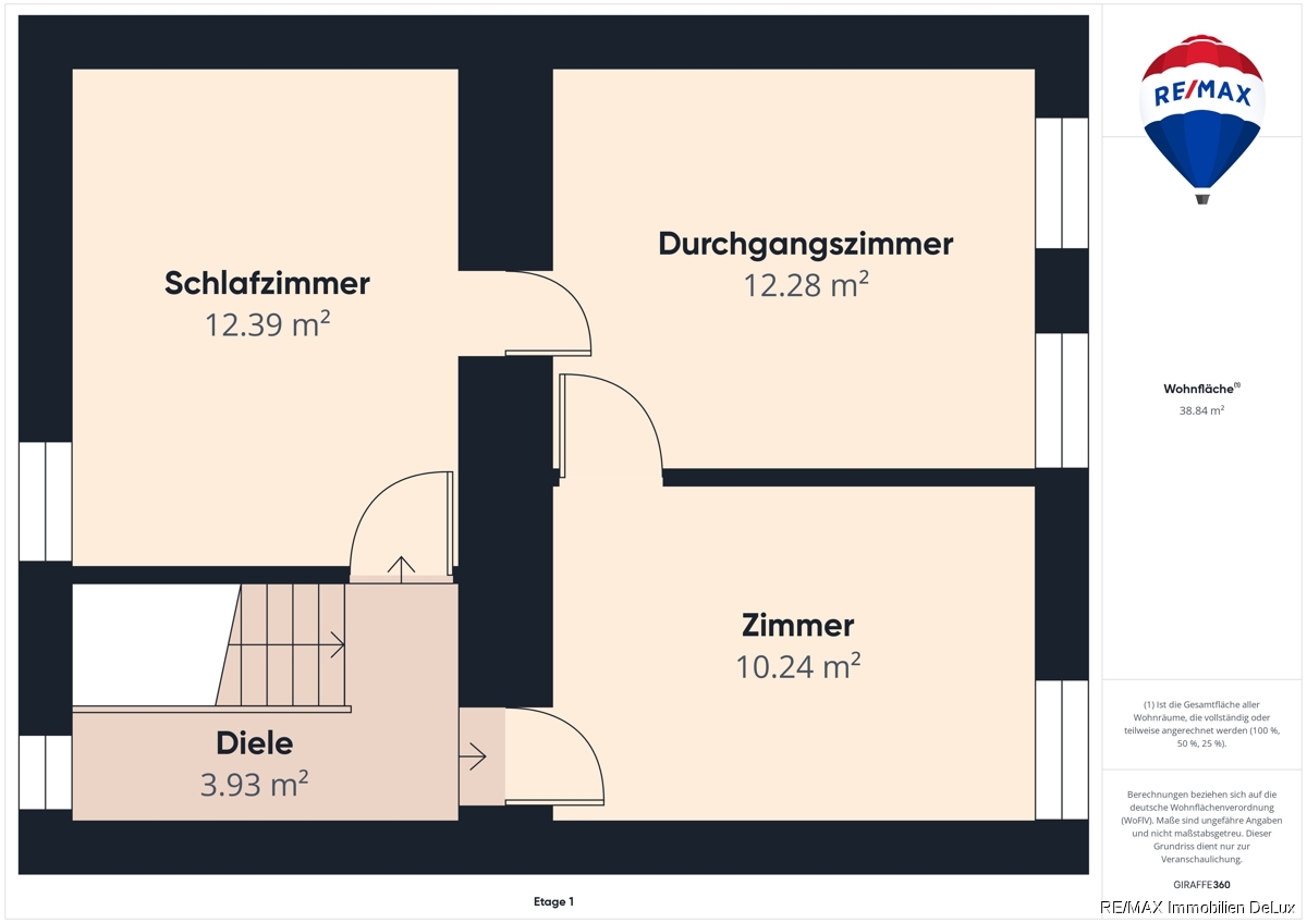 Provision: Die Maklerprovision in Höhe von 3,57 % des Kaufpreises inkl. 19 % MwSt. ist mit Abschluss des Vertrages verdient und fällig. RE/MAX erhält einen unmittelbaren Zahlungsanspruch gegenüber dem Käufer zugunsten Dritter, § 328 BGB). Hinweis: Bitte beachten Sie, dass dieses Angebot anhand der uns vom Eigentümer zur Verfügung gestellten Daten und Unterlagen erstell wurden. Trotz aller Sorgfalt können wir für die Richtigkeit und Vollständigkeit der Angaben keine Gewähr übernehmen. Verbrauchsinformation. Online-Streitbeilegung gemäß Art. 14 Abs. 1 ODR-VO: Die Europäische Kommission stellt eine Plattform zur Online-Streitbeilegung (OS) bereit, die Sie hier finden: ec.europa.eu/consumers/odr