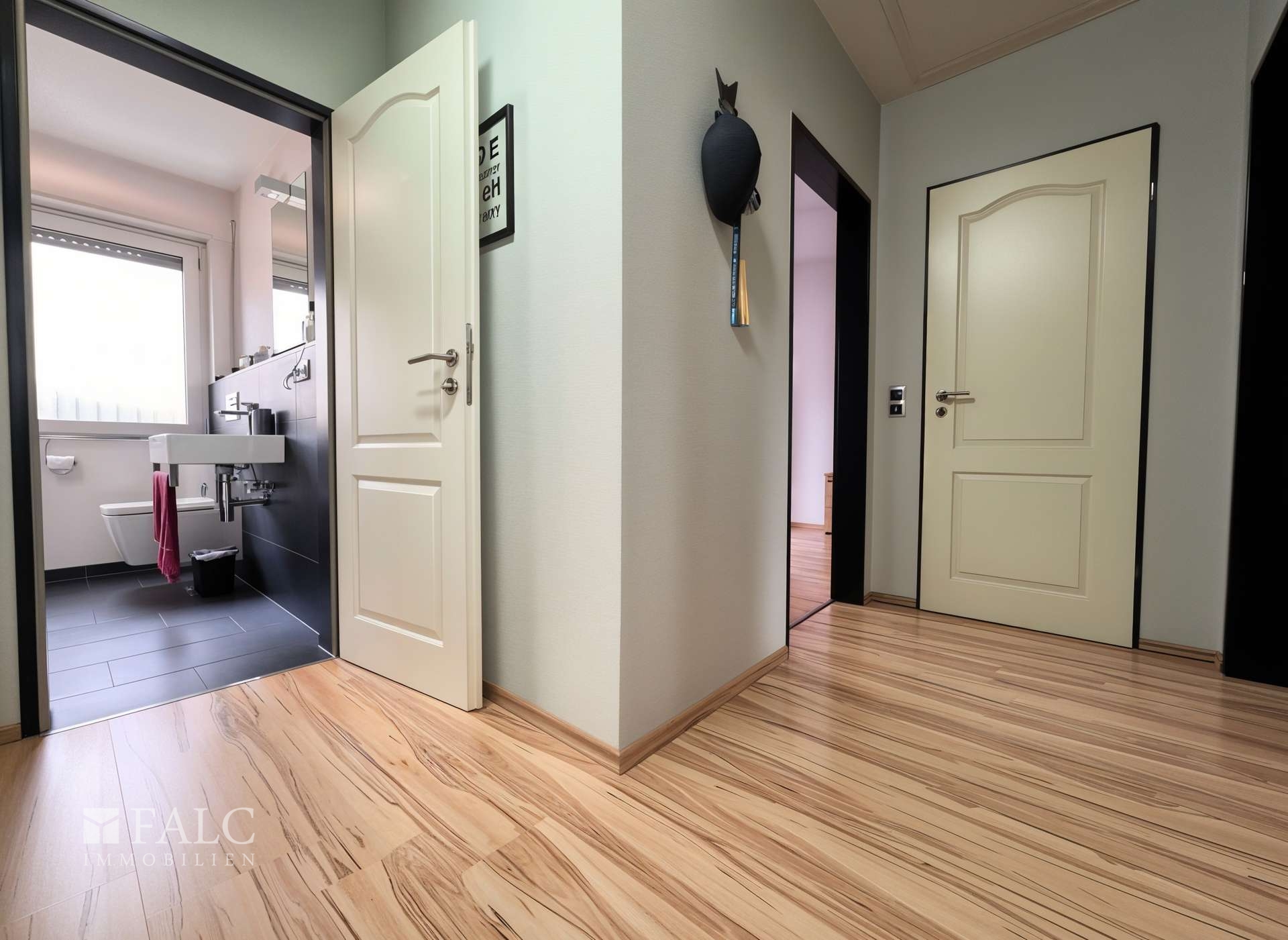 Die Fenster wurden 2001 erneuert und sorgen mit ihrer guten Isolierung für ein angenehmes Raumklima und hohe Energieeffizienz. Bodenbeläge sowie sanitäre Anlagen wurden 2011 hochwertig modernisiert und präsentieren sich in einem zeitgemäßen, stilvollen Design. Die Bäder überzeugen durch moderne Armaturen, anthrazitfarbene Fliesen und eine funktionale, familienfreundliche Raumaufteilung.