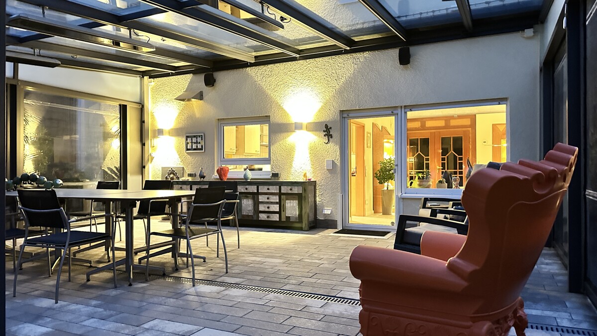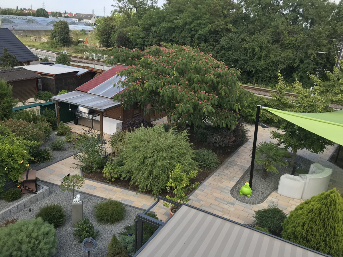 Die Highlights im Überblick: - Traumhafter Garten mit Loungebereich, Wintergarten, Holzhaus und Almhütte - Sehr guter energetischer Zustand: Klasse C, Brennwertheizung von 2024, Dachdämmung - Viele technische Details für Sicherheit und Wohnkomfort wie: Alarmanlage, Kameraüberwachung, Sicherheitsfenster, Videosprechanlage, Homematic System, Chip Zugang, Klimaanlagen, Netzwerkverkabelung, Wallbox, automatische Gartenbewässerung - Das große Grundstück kann mit einem weiteren frei stehenden Einfamilienhaus bebaut werden mit maximaler Größe von 12m x 19m