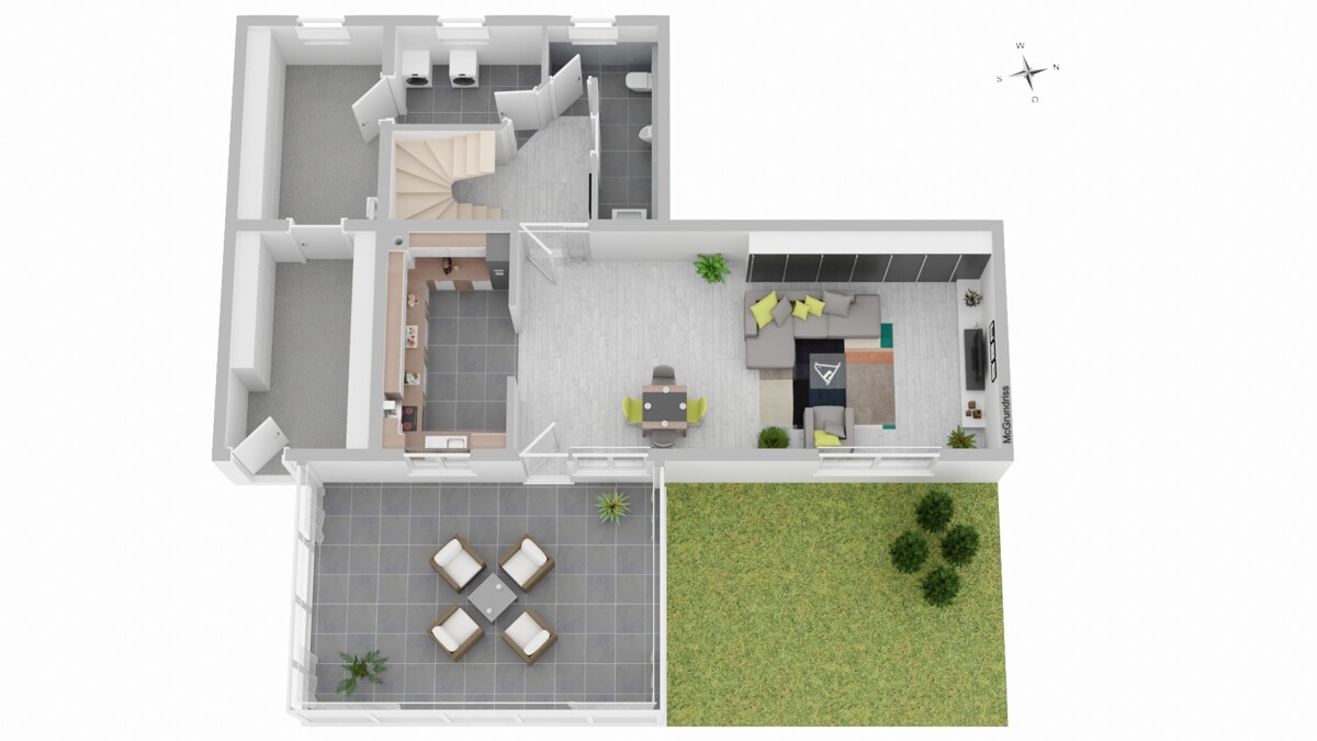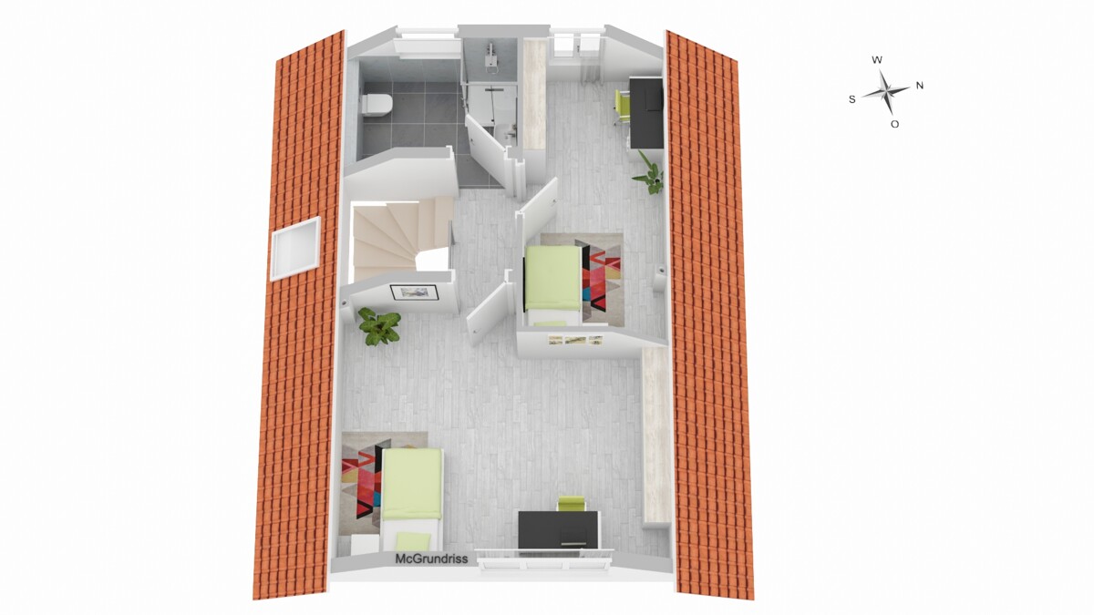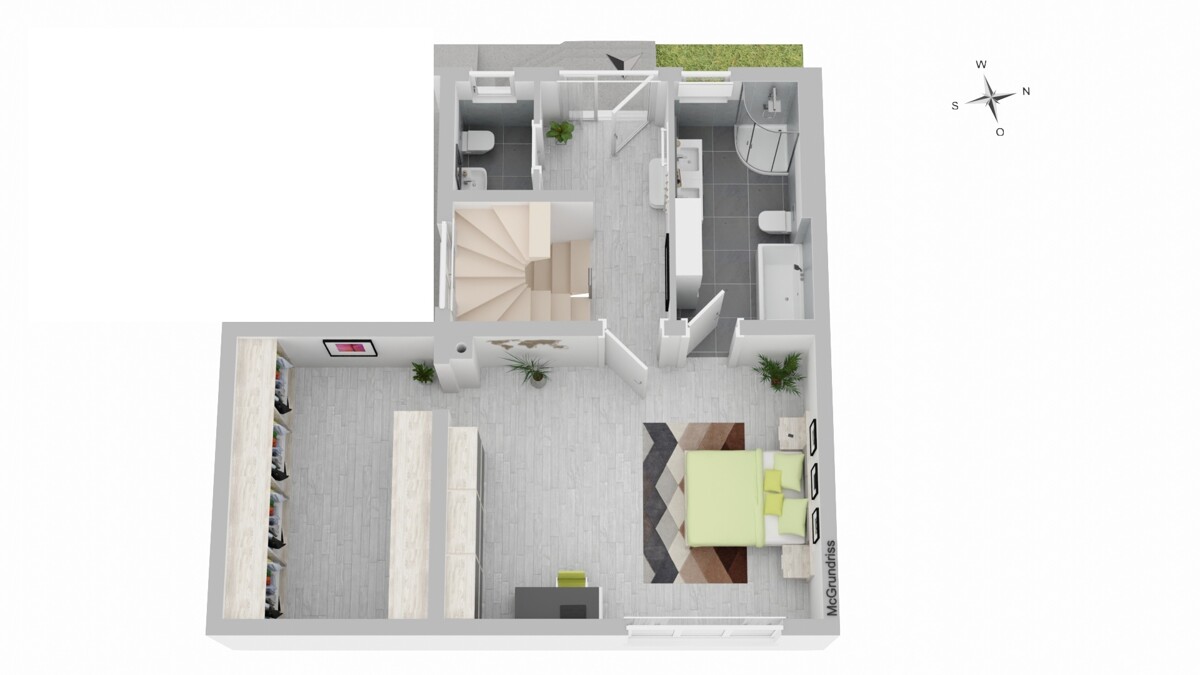 Es ist in drei Stockwerke unterteilt: - Wohn und Essbereich mit Küche, WC und Zugang zum traumhaften Garten - Elternbereich mit eigenem Tageslichtbad und Garderobe oder Arbeitszimmer - Kinderbereich mit 2 Schlafräumen und einem Tageslichtbad