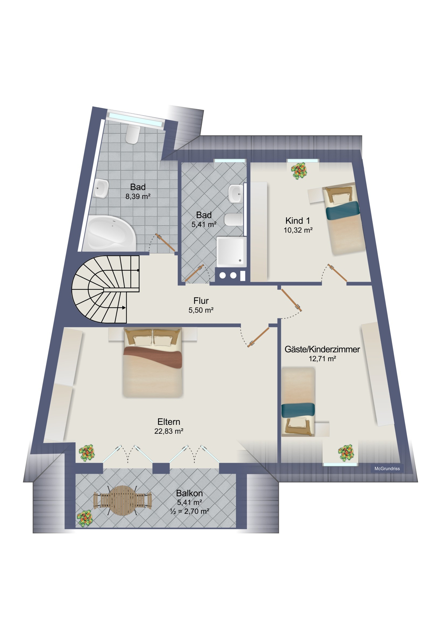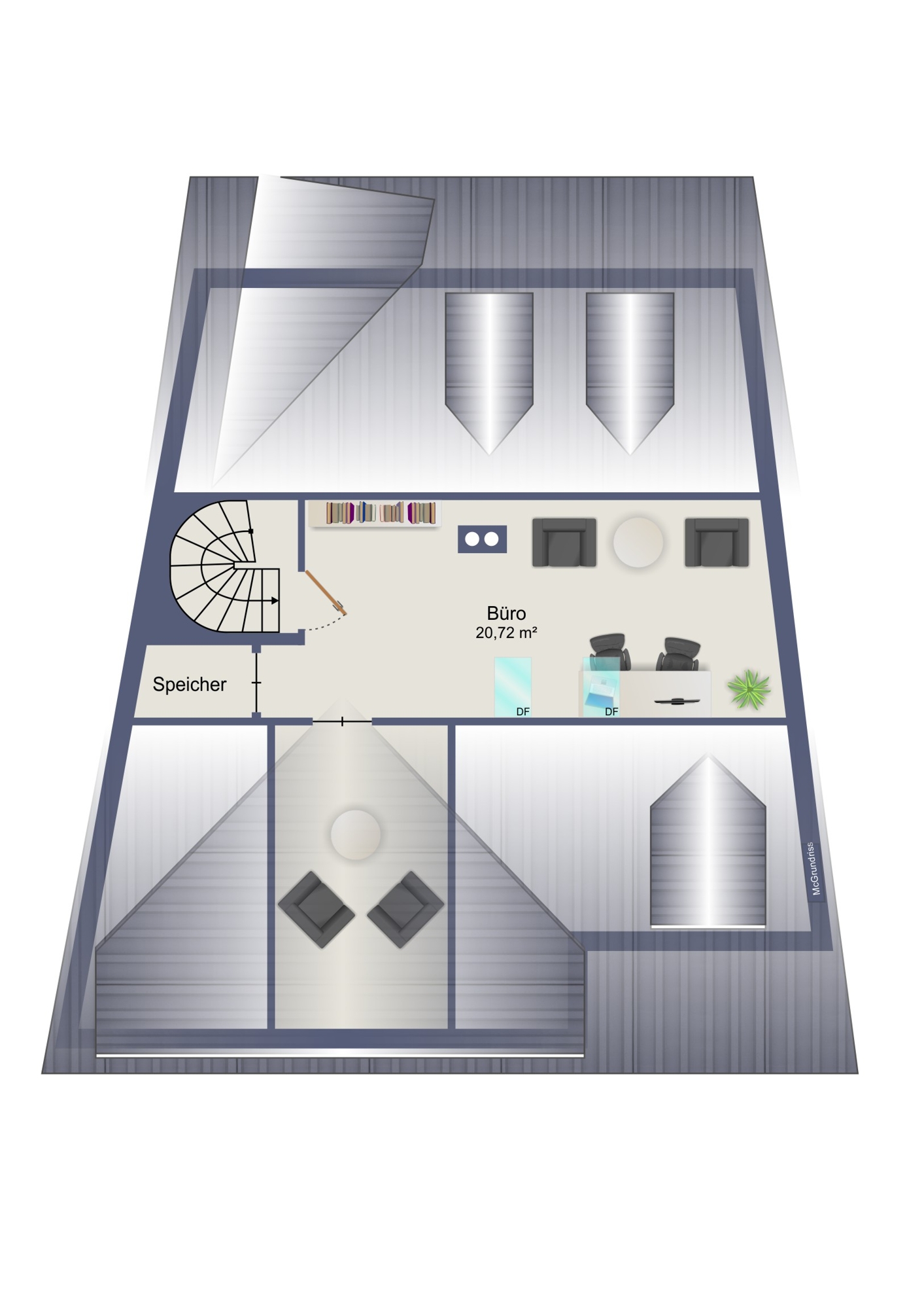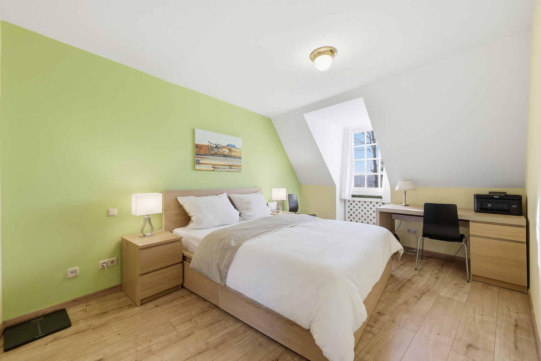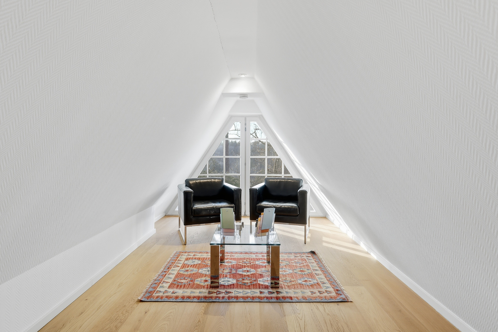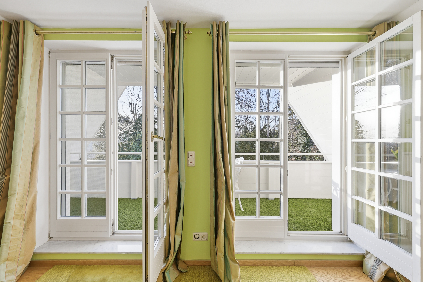 Das ausgebaute Dachgeschoss bietet zusätzliche Flexibilität für ein Büro oder ein Gäste-/Kinderzimmer. Die großen Fenster mit direktem Blick auf das Isarhochufer verleihen diesem Raum einen ganz besonderen Charme.