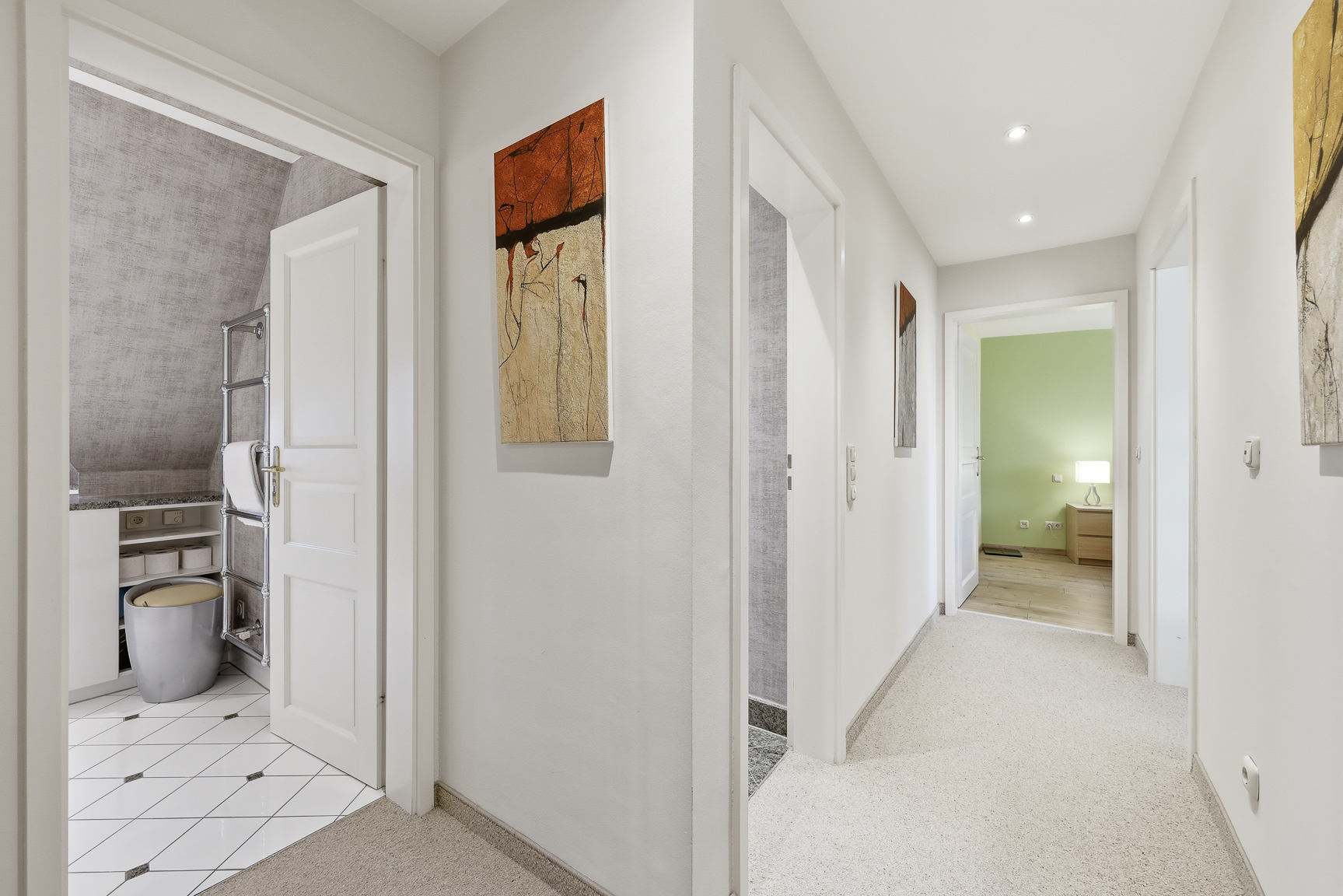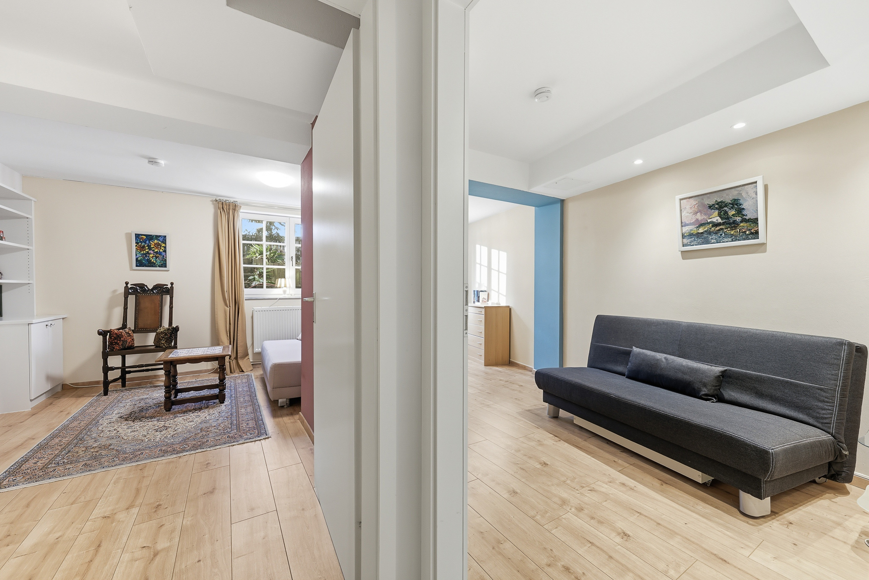 Das Familienidyll verfügt über insgesamt acht Zimmer, hiervon fünf Schlafzimmer, die sich auf das erste sowie das Untergeschoss verteilen. Die Schlafzimmer sind mit hochwertigen Parkett- sowie Laminatböden ausgestattet. Der große Balkon im ersten Obergeschoss lässt Sie zusätzliche Sonnenstunden im Freien genießen und bietet einen einmaligen Blick ins Grüne.