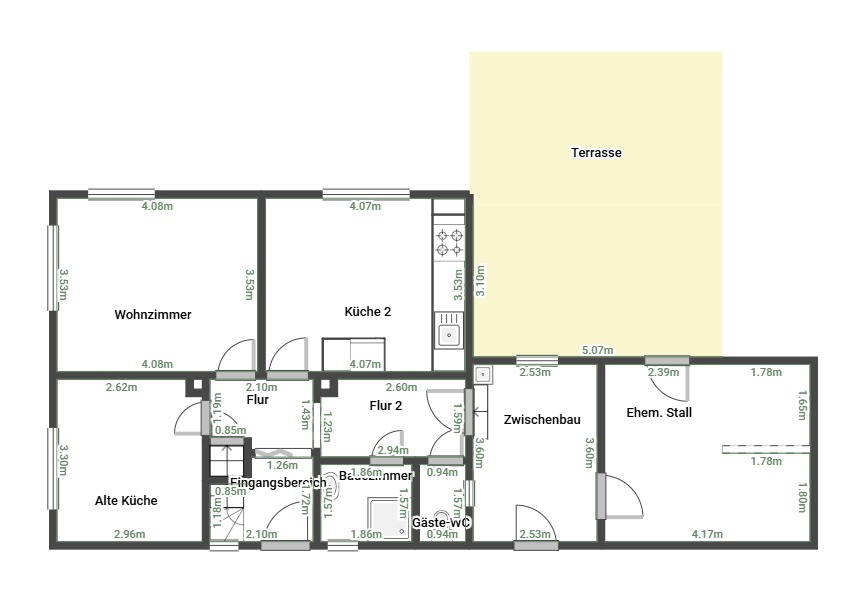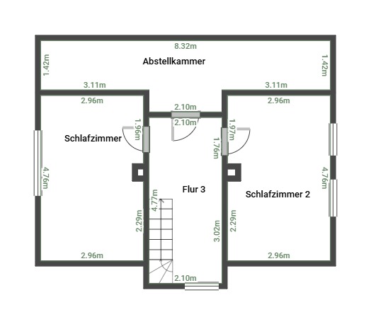 - Zwei Schlafzimmer - Abstellraum (ideal für Hauswirtschaft, Kleidung, Lagerung) - Flur mit Zugang zu allen Räumen