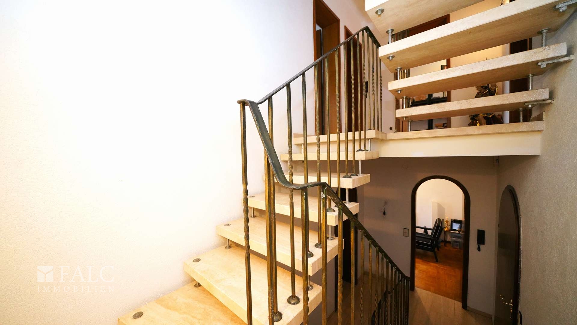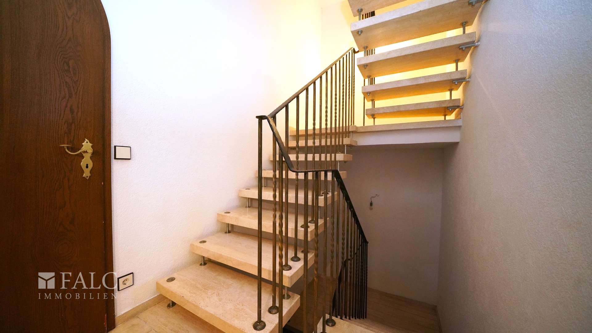 Durchlaufen Sie die hochwertigen Travertin-Treppen mit Stahlgeländer nach oben gelangen Sie in Ihrer Rückzugsoase. Hier empfängt Sie das Obergeschoss mit ausreichend vielen Zimmern und einem gemeinsamen Tageslicht-Bad.