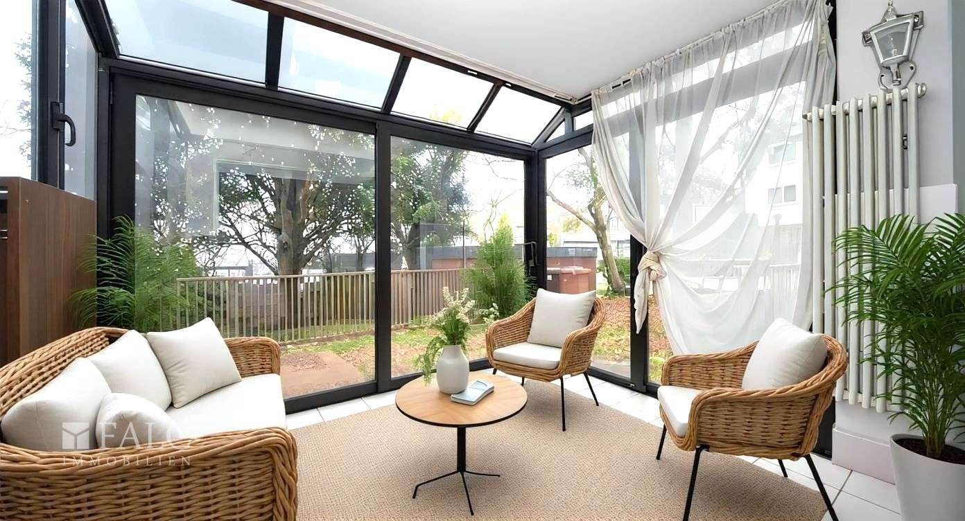 Nahtlos daran angeschlossen öffnet sich der beheizbare Wintergarten, der Ihnen zu jeder Jahreszeit zusätzlichen Wohnkomfort bietet. Ob als Ruheoase oder gemütliche Leseecke. Hier genießen Sie das Gefühl von Naturverbundenheit und dass selbst an kalten Tagen. Vom Wintergarten aus gelangen Sie zudem direkt in den Garten.