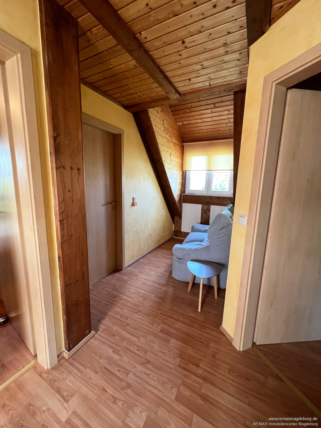 Dachgeschoss: - 3 Schlafzimmer, (zwei mit Zugang zum Balkon), - Wannenbad mit Waschtisch,
