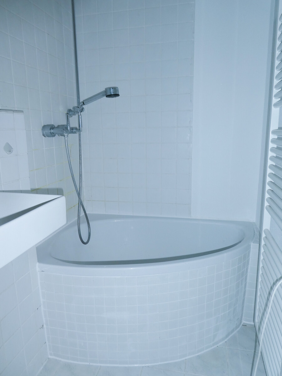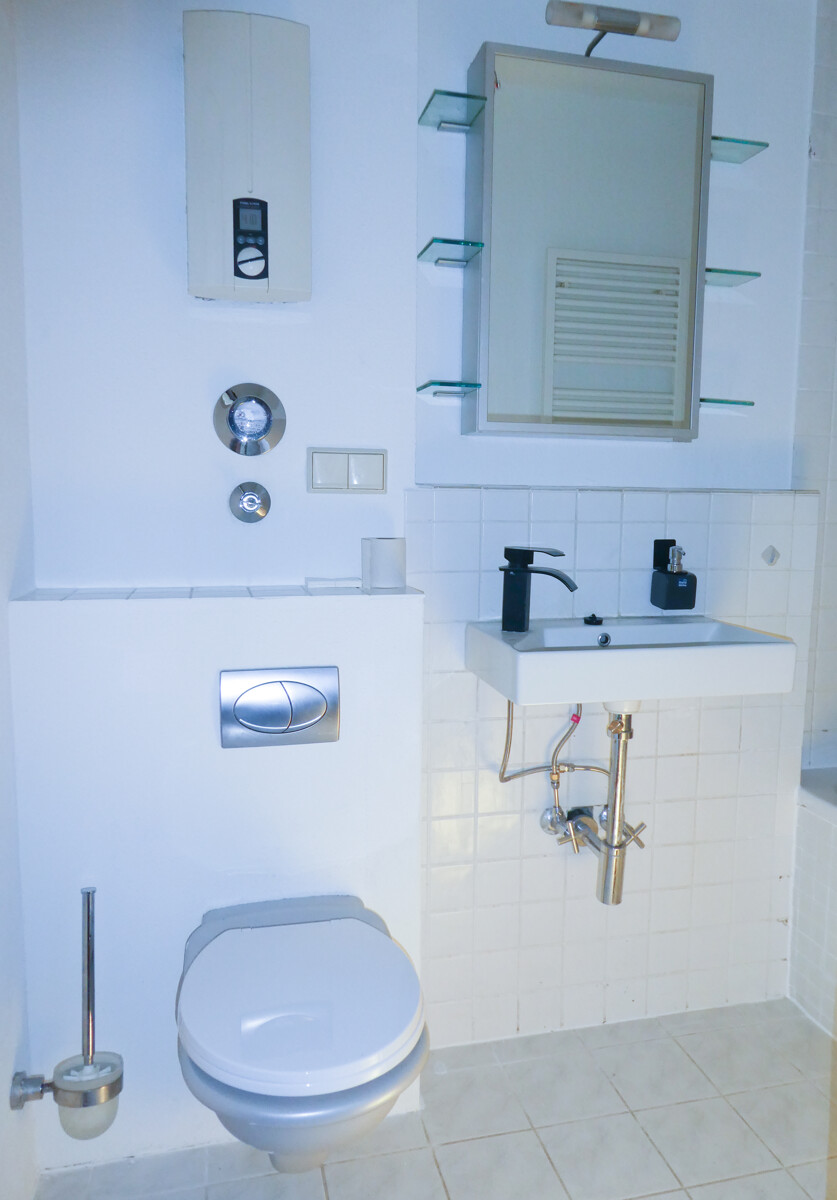 Das Badezimmer ist funktional gestaltet und verfügt über eine Badewanne, Waschbecken und WC. Zusätzliche Abstellmöglichkeiten bietet ein eigener Kellerraum.