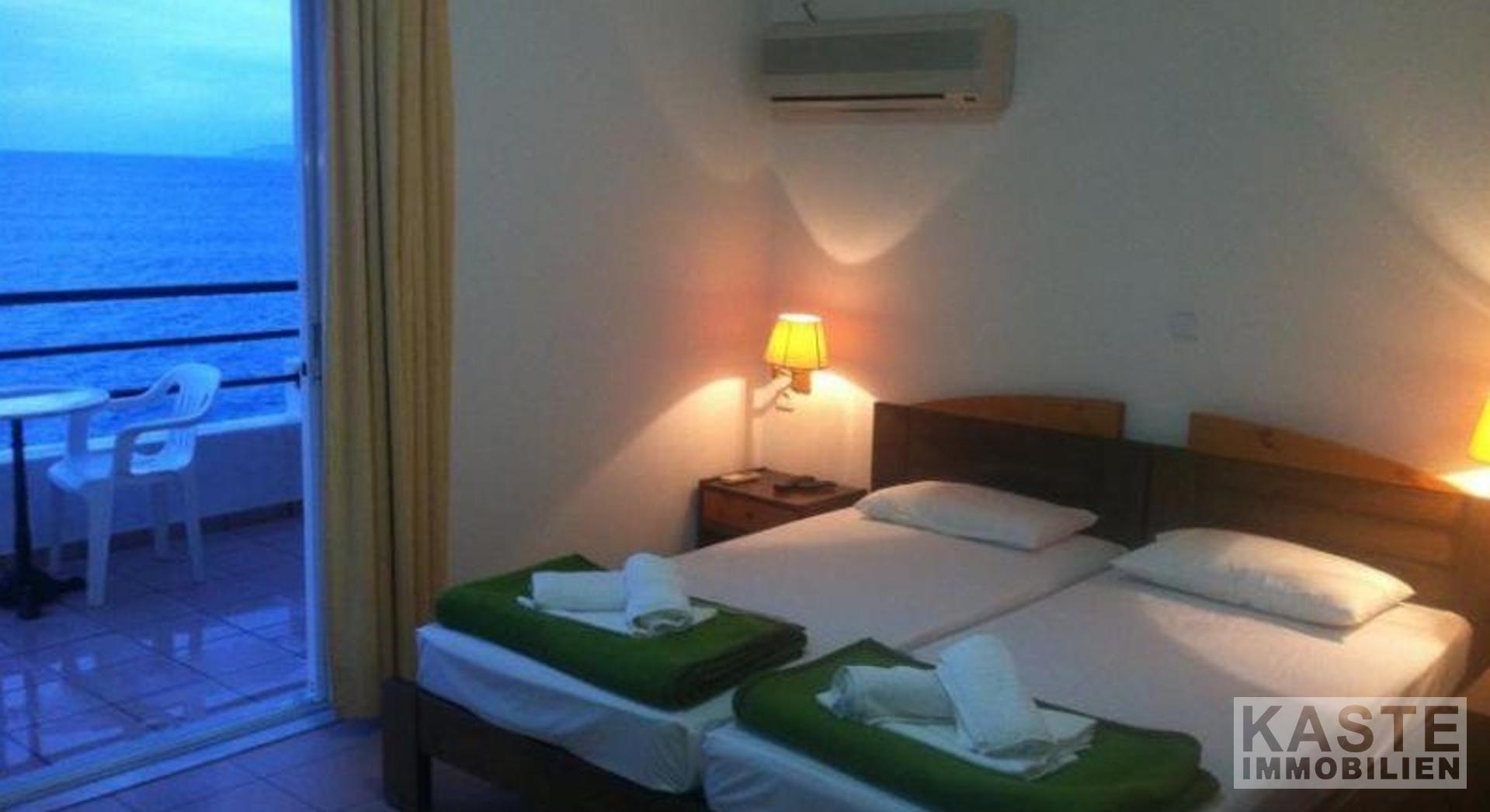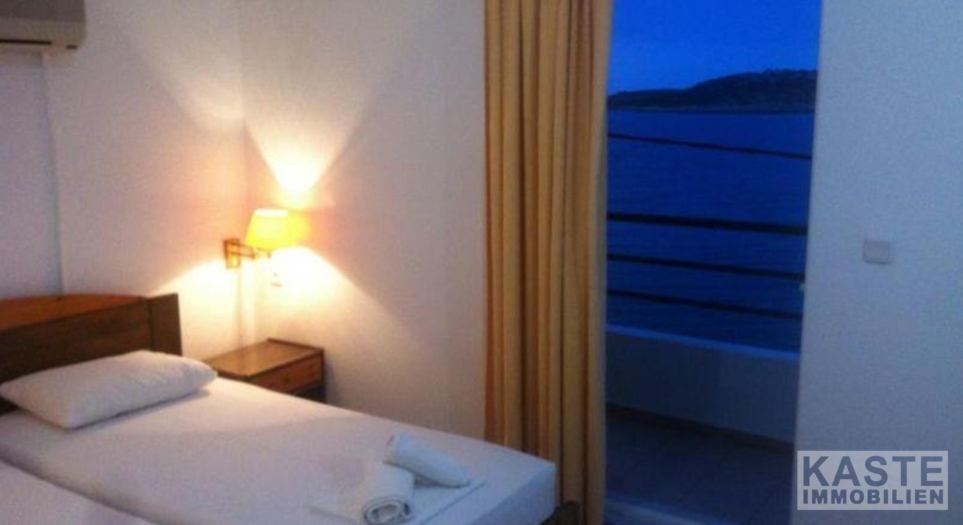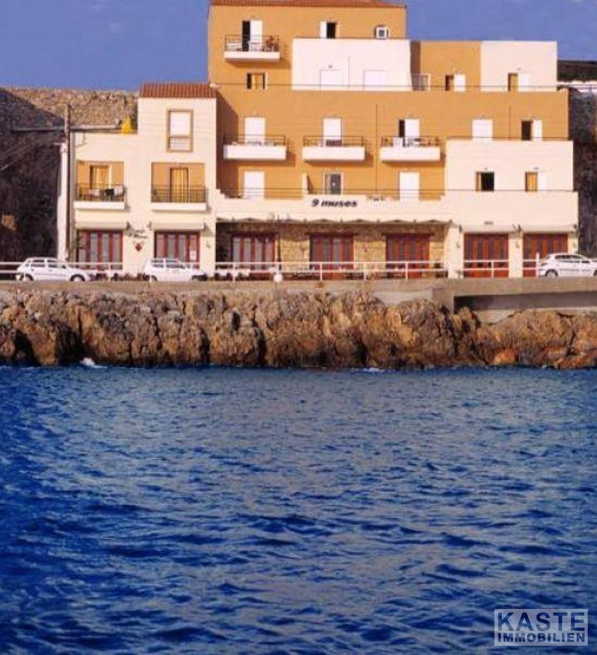 Gebäude mit 10 Ferienwohnungen und 2 Geschäften (Cafeteria und Restaurant) zu verkaufen, direkt an der Strandpromenade von Agios Nikolaos und neben dem Hafen, mit fantastischem Blick auf das Meer, die Insel und den Sonnenaufgang.