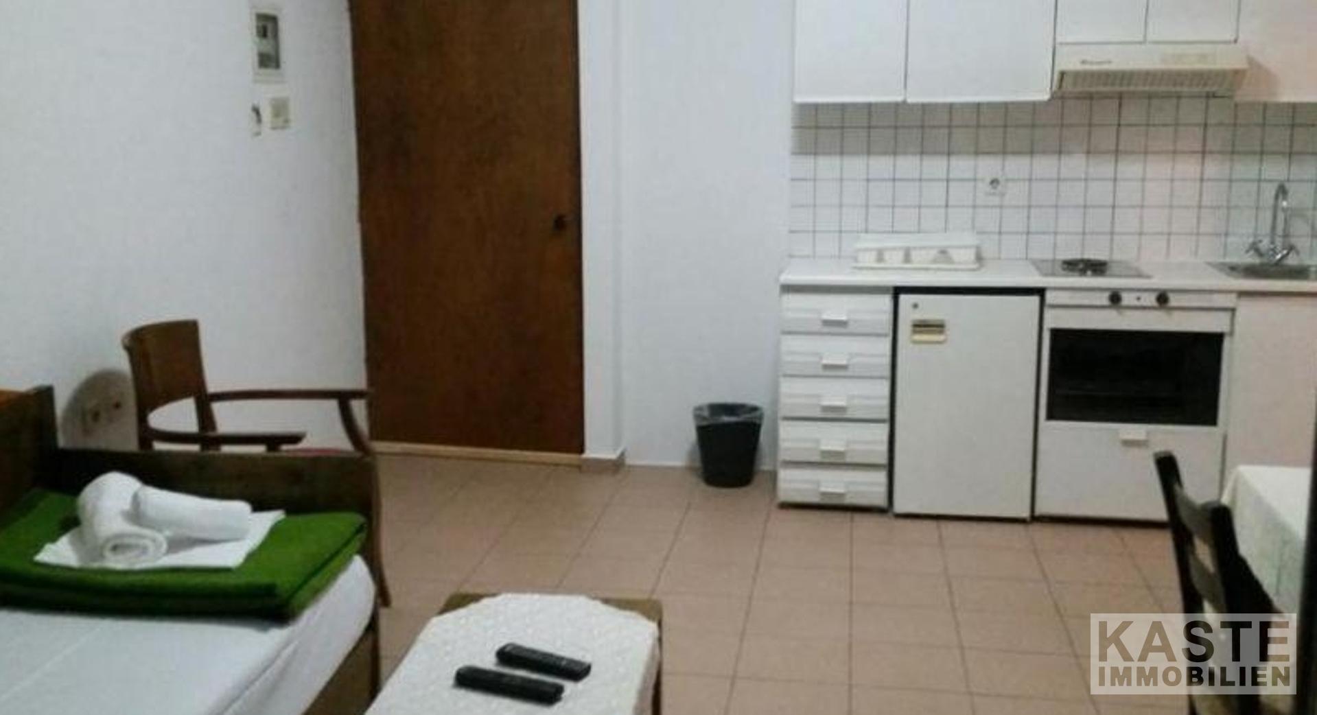 Die Apartments sind möbliert, haben eine Küchenzeile mit Kühlschrank, Klimaanlage und einen Balkon mit Meerblick.