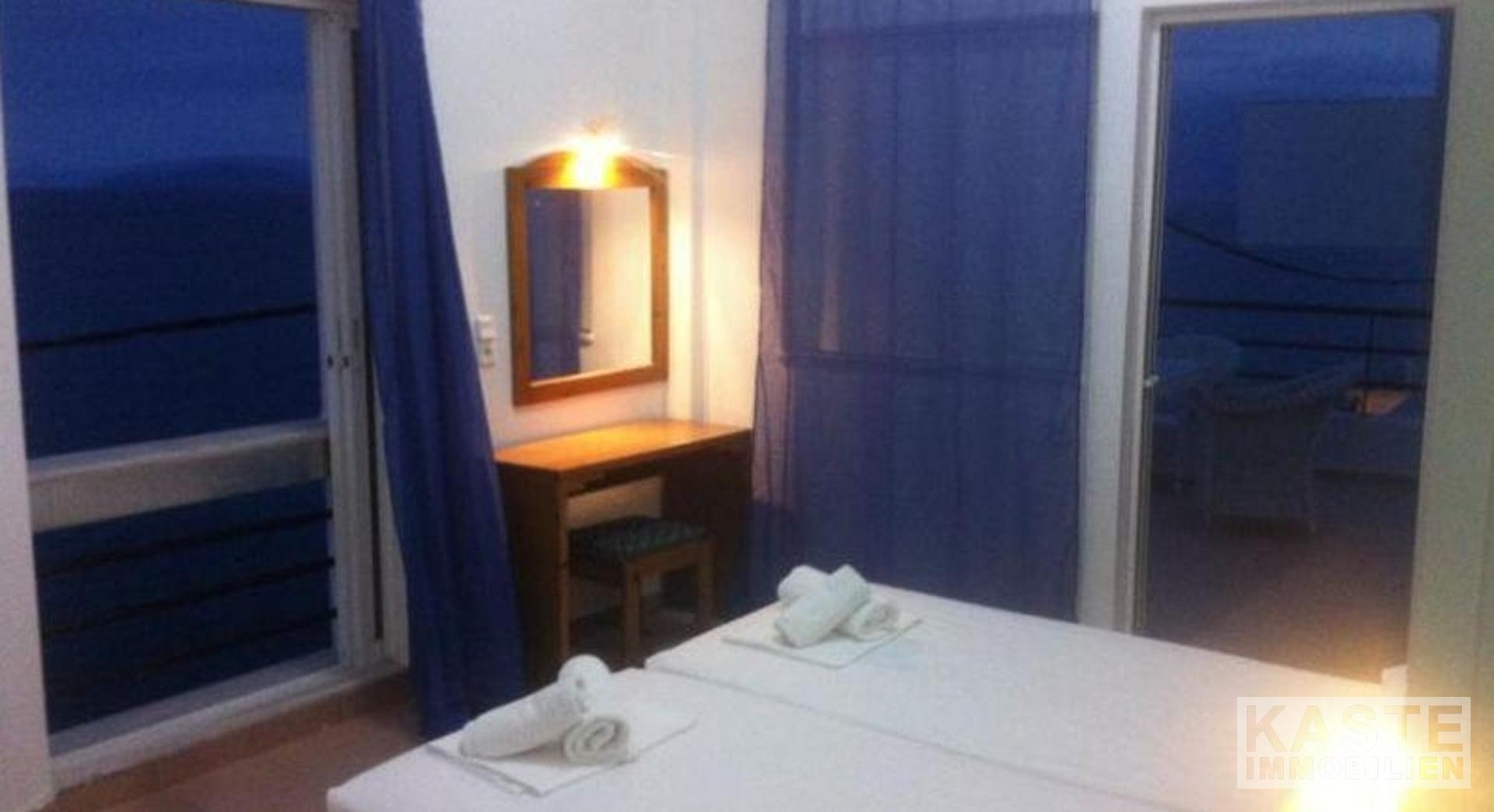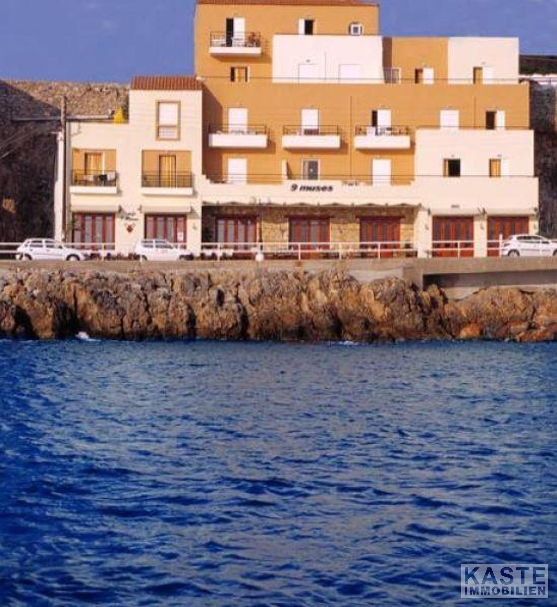 Gebäude mit 10 Ferienwohnungen und 2 Geschäften (Cafeteria und Restaurant) zu verkaufen, direkt an der Strandpromenade von Agios Nikolaos und neben dem Hafen, mit fantastischem Blick auf das Meer, die Insel und den Sonnenaufgang.