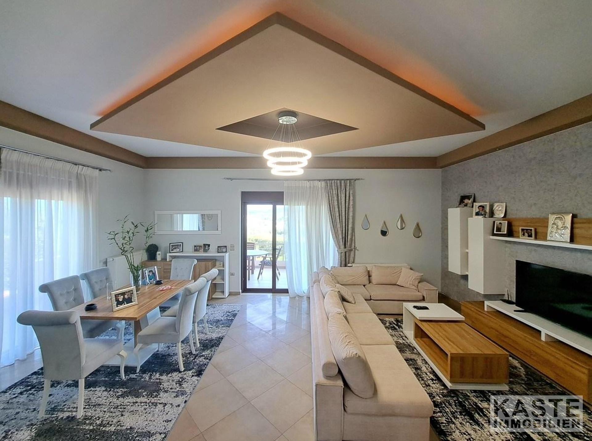 Willkommen in Ihrem Traumhaus in der reizenden Nachbarschaft von Kalyves, gelegen in der begehrten Region Apokoronas auf Kreta. Diese beeindruckende Villa wurde im Jahr 2013 erbaut und bietet eine großzügige Wohnfläche von 180 m2 auf dem Erdgeschoss sowie ein zusätzliches Untergeschoss von 180 m2, eingebettet auf einem geräumigen Grundstück von 2000 m2.