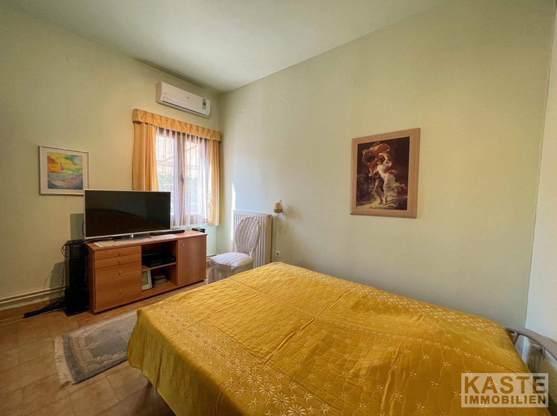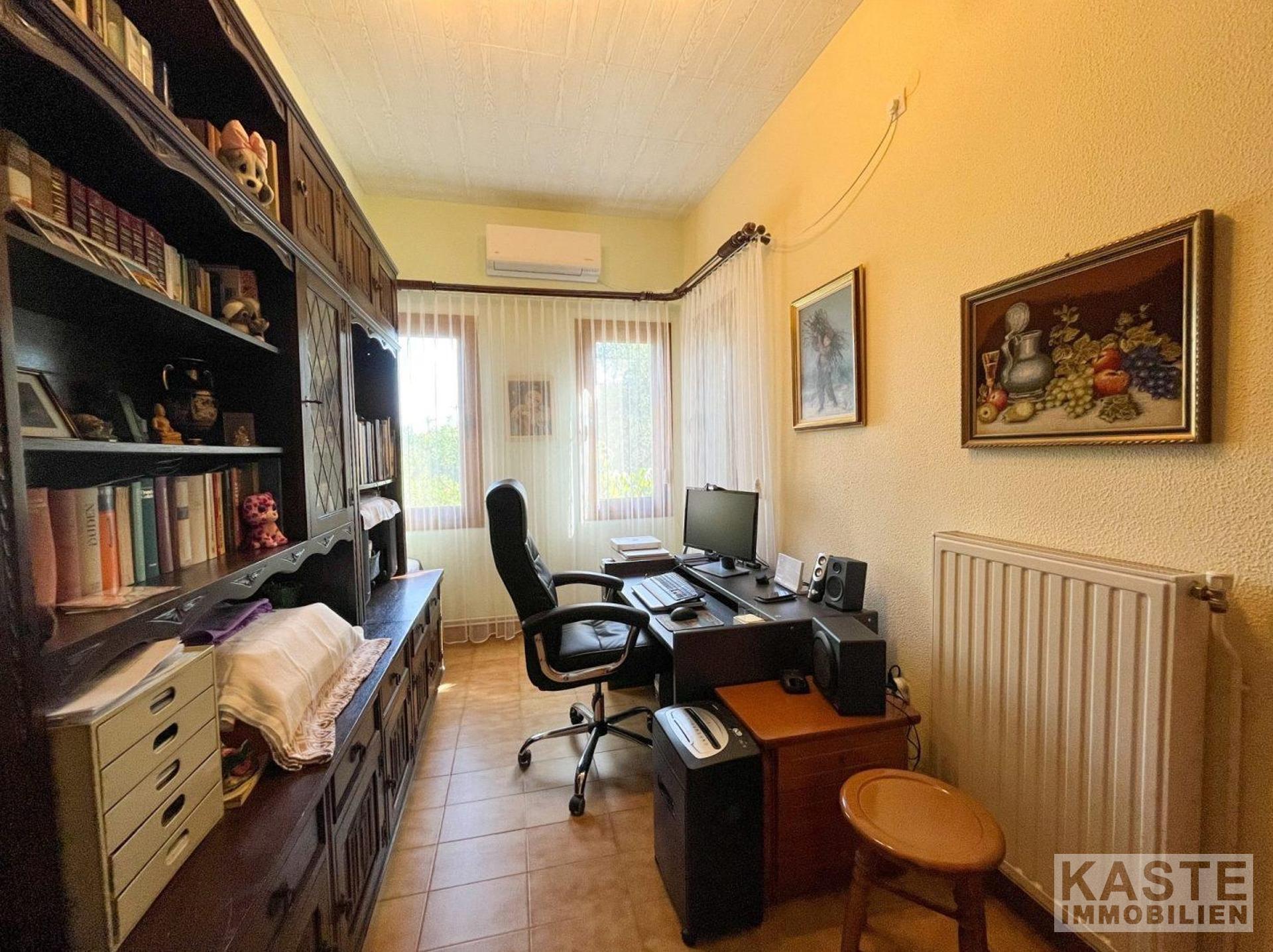 - Vermietungsservice möglich (modular anpassbar) - Online Besichtigung möglich - Schlafzimmer: Drei gut dimensionierte Schlafzimmer. - Badezimmer: Ein Familienbadezimmer sowie ein Gäste-WC. - Wohnbereich: Ein großes Wohnzimmer mit Kamin und separatem Essbereich, beide mit Zugang zu einer geschlossenen Terrasse durch große Glasschiebetüren. - Küche: Eine separate Küche. - Erster Stock: Ein ungenutzter erster Stock mit Potenzial zur Schaffung weiteren bewohnbaren Raums. - Außenbereich: Ein hauptsächlich flacher Garten mit einem schönen Zitronenhain, Oliven- und Obstbäumen, einheimischer Flora und einer großzügigen Rasenfläche. Eine Doppelgarage mit elektrischen Toren, ein separater Abstellraum und eine Außenküche sind ebenfalls vorhanden. - Weitere Ausstattung: Das Grundstück ist eingezäunt und sehr gepflegt, und es gibt zahlreiche Möglichkeiten, die Zeit im Freien zu genießen.