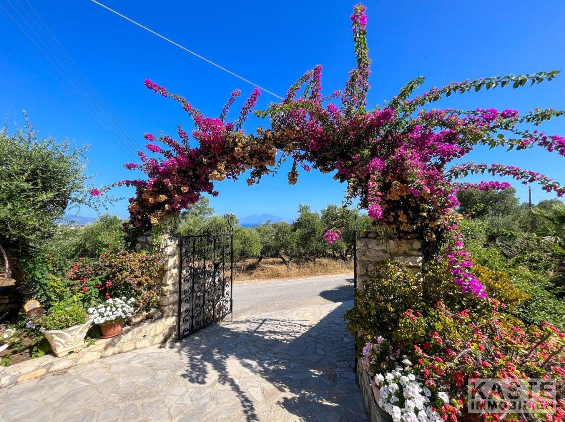 In einem ruhigen Wohnviertel von Tragaki auf Zakynthos befindet sich diese wunderschöne Finca mit 3 Schlafzimmern, die gut erhaltene traditionelle Merkmale und einen herrlichen Meerblick bietet. Das Haupthaus erstreckt sich über das Erdgeschoss und umfasst ein geräumiges Wohnzimmer mit separatem Essbereich, beide öffnen sich zu einer geschlossenen Terrasse durch große Glasschiebetüren. Eine separate Küche, ein Familienbadezimmer, ein Gäste-WC und drei großzügig geschnittene Schlafzimmer vervollständigen das Erdgeschoss. Eine Treppe führt in den ungenutzten ersten Stock, der jedoch das Potenzial bietet, zusätzlichen Wohnraum zu schaffen, falls gewünscht.