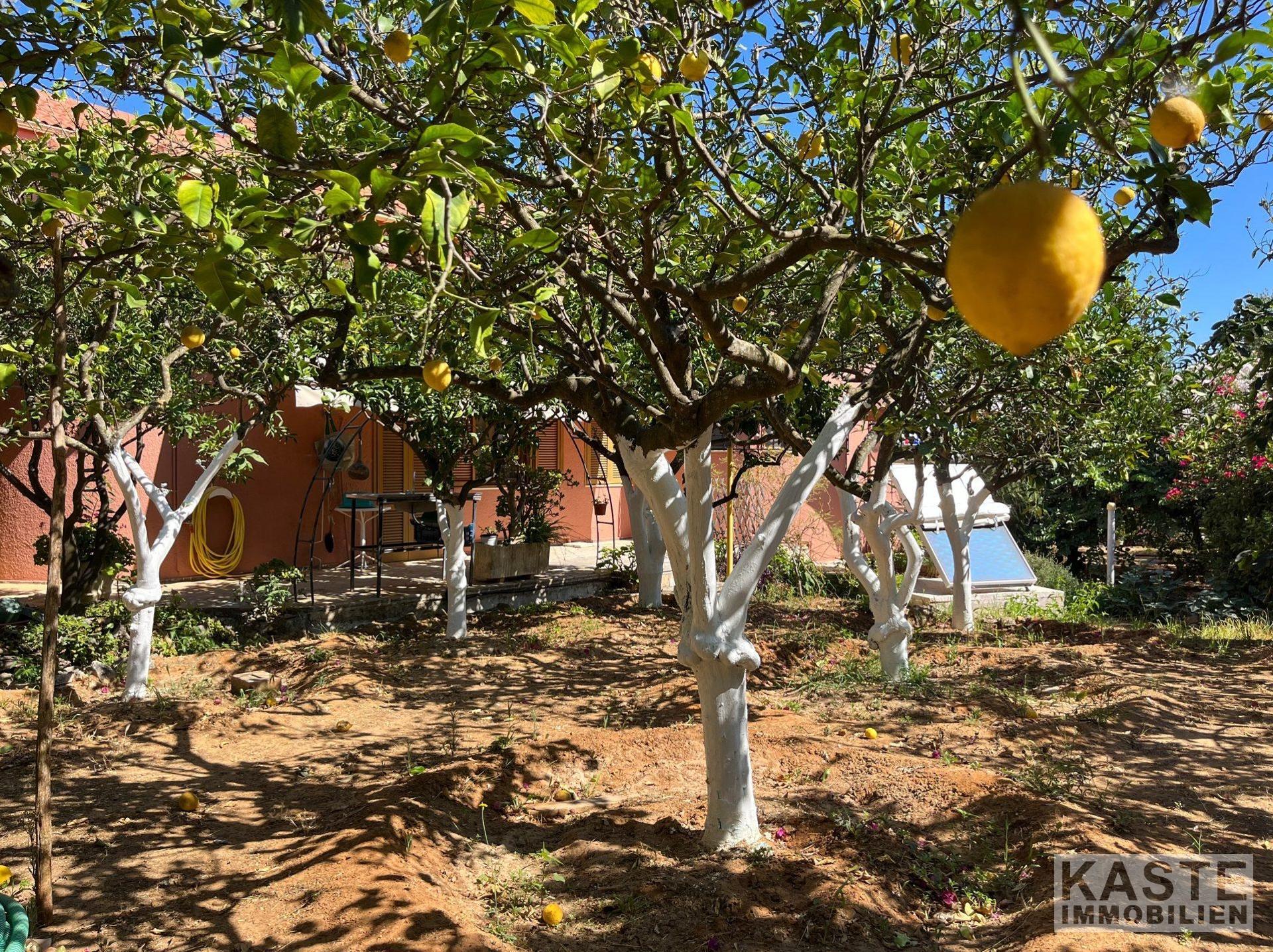 Der hauptsächlich flache Garten, der von einem schönen Zitronenhain umgeben ist, bietet einen herrlichen Raum, um die Natur zu genießen. Er ist mit Oliven- und Obstbäumen sowie einheimischer Flora und einer großzügigen Rasenfläche bepflanzt. Angrenzend an das Anwesen befindet sich eine Doppelgarage mit elektrischen Toren sowie ein separater Abstellraum und eine Außenküche. Das eingezäunte Grundstück ist sehr gepflegt und bietet zahlreiche Möglichkeiten, die Zeit im Freien zu verbringen.