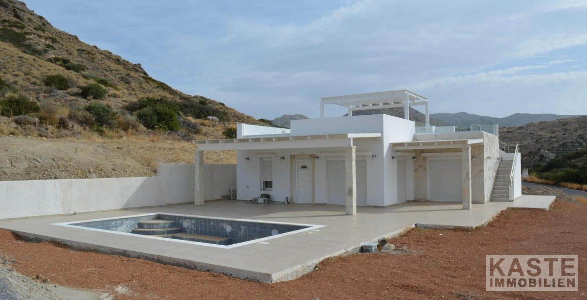 Wunderschöne neue Villa mit Pool, die nach Plan gebaut wurde. Sie liegt in einer ruhigen Gegend nur 2 Autominuten außerhalb des Ferienortes Makrigialos. Diese Immobilie wurde im authentischen kretischen Stil mit modernen Akzenten entworfen. Sie ist energieeffizient und hochwertig gebaut. Jede Villa wird mit einem 1000 Quadratmeter großen Grundstück geliefert. Noch größere Grundstücke sind bei Bedarf gegen einen geringen Aufpreis erhältlich.