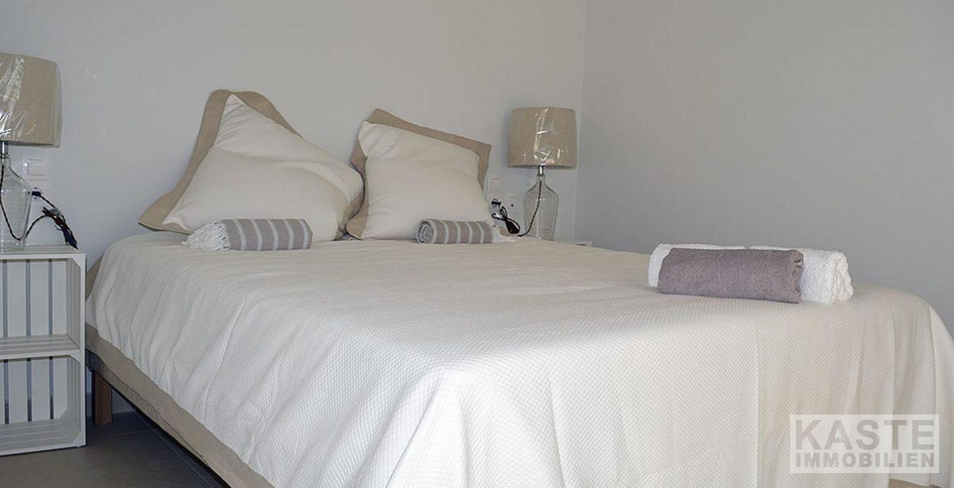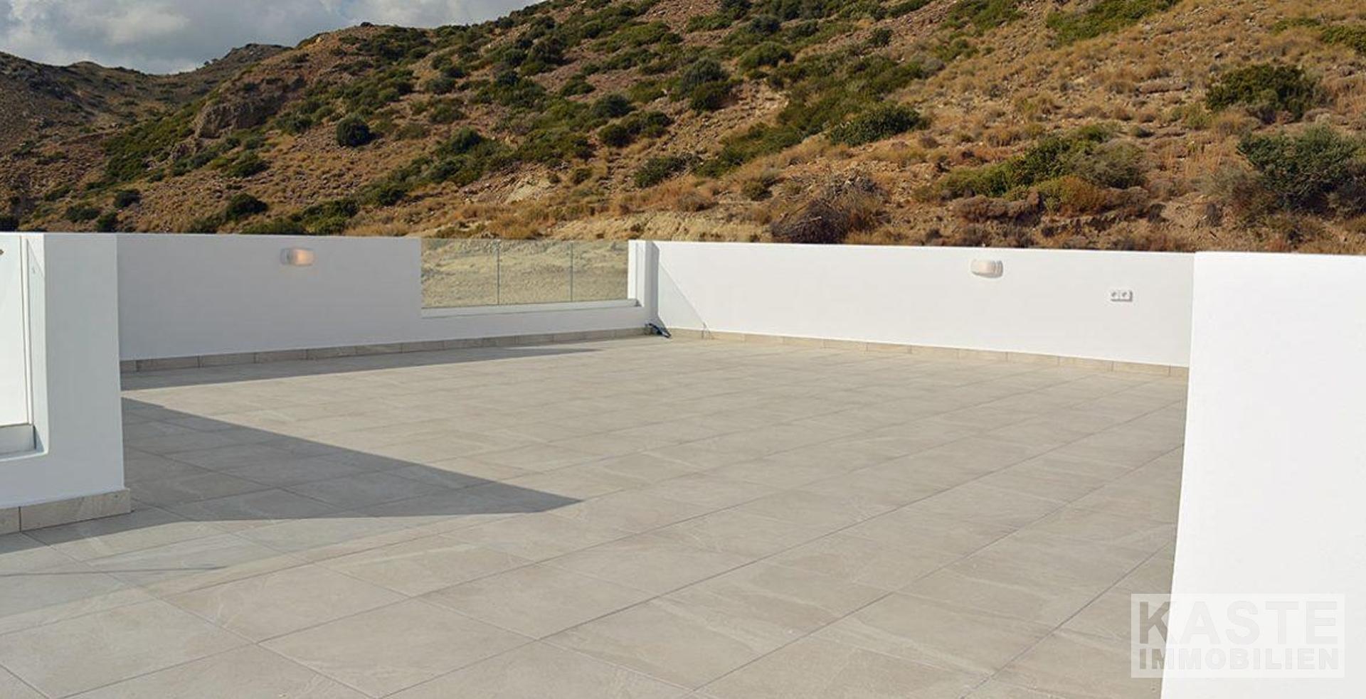 Diese fertige Villa mit 2 Schlafzimmern und 2 Badezimmern wurde nach einem sehr hohen Standard fertiggestellt. Die großen Terrassentüren, die zum Pool und zu den Terrassen führen, lassen viel Licht herein und verleihen der Immobilie eine helle und luftige Atmosphäre. Das Anwesen verfügt über eine Reihe von Außenbereichen, darunter die große Dachterrasse, auf der Sie die warmen Abende genießen können, während Sie die großartige Aussicht genießen, einen wunderbaren Pool und Poolbereich sowie geräumige schattige Terrassen, die die gesamte Villa umgeben. Sie haben auch die Möglichkeit, den Garten Ihrer Wahl zu gestalten, den Einrichtungsservice zu nutzen und die Dachterrasse komplett auszustatten.