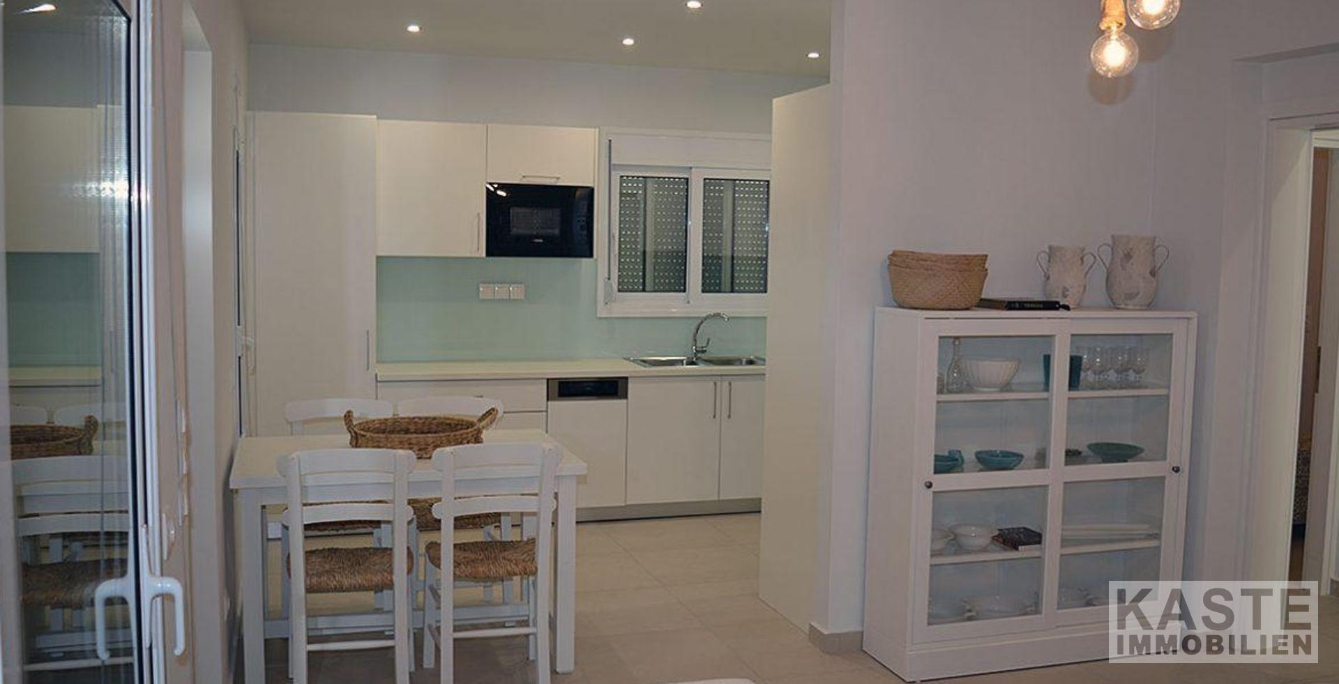 Doppelt verglaste Fenster mit integrierten Insektenschutzgittern, hochleistungsfähige Sicherheitsrollläden für alle Terrassentüren und Fenster. Große Einbauküche mit eingebautem Backofen, Mikrowelle, Ceran-Kochfeld, Kühl- und Gefrierschrank und Waschmaschine. Zwei voll ausgestattete Bäder mit Duschkabinen, Regendusche, Toilette, Waschbecken und Badezimmerschrank. Große geflieste Terrassen auf der Vorder- und Rückseite der Villa. Voll ausgestattete Einbauschränke in beiden Schlafzimmern. Klimageräte zum Kühlen und Heizen im Wohnbereich und in den Schlafzimmern. Wärmepumpe für 24/7 sofortiges warmes Wasser.Auffahrt zu jedem Haus mit Lichtkabeln und Entwässerung.Ballustraden/Gläser auf dem gesamten Dach für ein besseres Aussehen.
