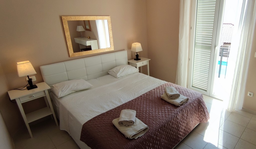 Die Villa umfasst insgesamt 4 Schlafzimmer, die jeweils über eigene separate begehbare Kleiderschränke und private Badezimmer verfügen. Darüber hinaus gibt es ein geräumiges Wohnzimmer, von welchem man Zutritt zur Terrasse hat und man einen atemberaubenden Panoramablick auf das Meer und den Pool hat.