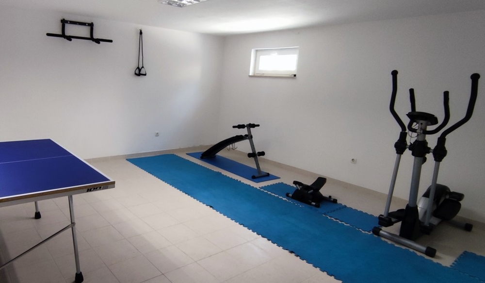 Neben den Schlafzimmern und dem Wohnbereich beherbergt die Villa noch weitere Annehmlichkeiten, wie z.B. ein Waschraum mit separatem Badezimmer. Insgesamt stehen den Bewohnern 5 Badezimmer und 6 Toiletten zur Verfügung. Sportbegeisterte finden im hauseigenen Fitnessraum reichlich Platz. Für gesellige Grillabende steht ein separates Grillhaus zur Verfügung.
