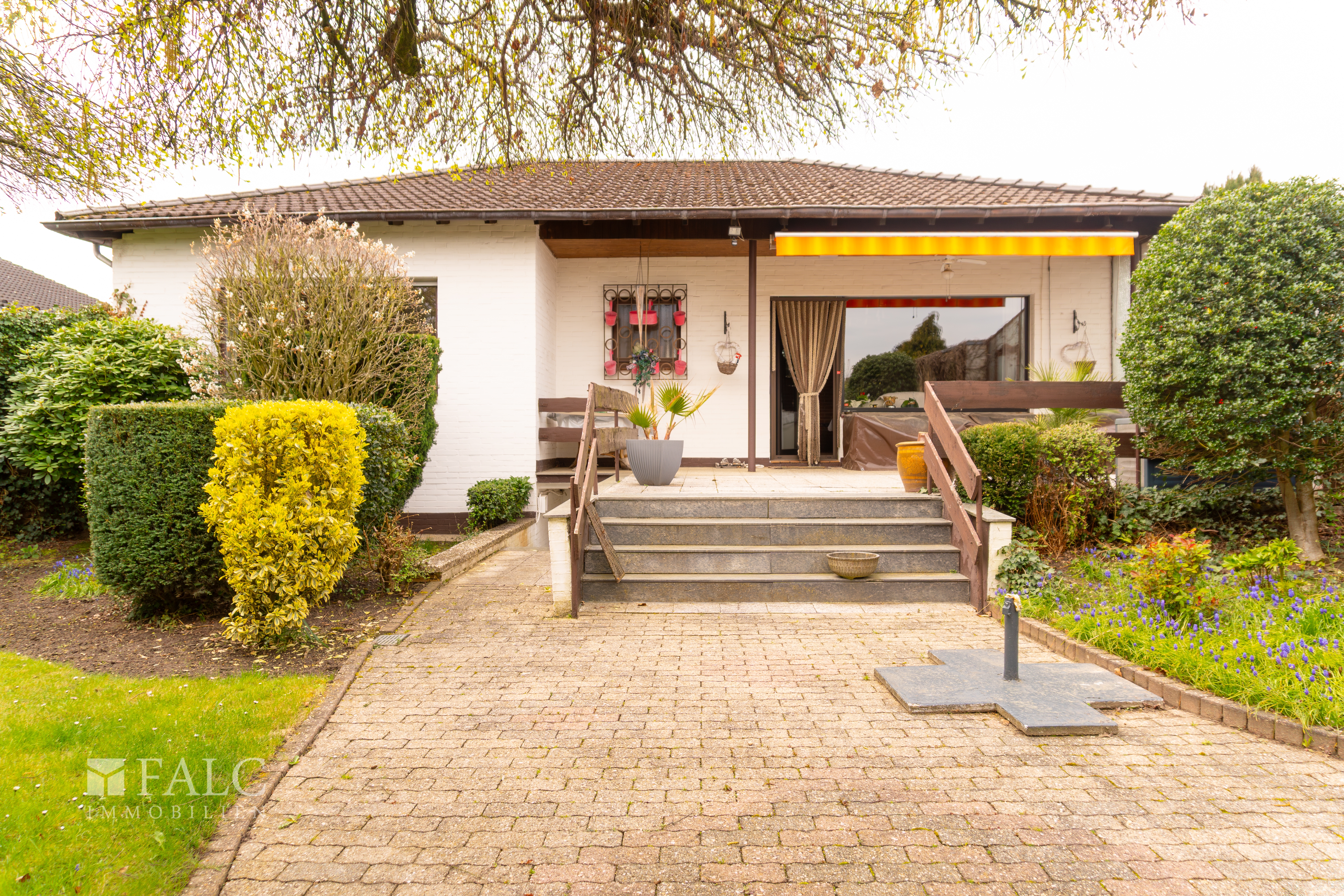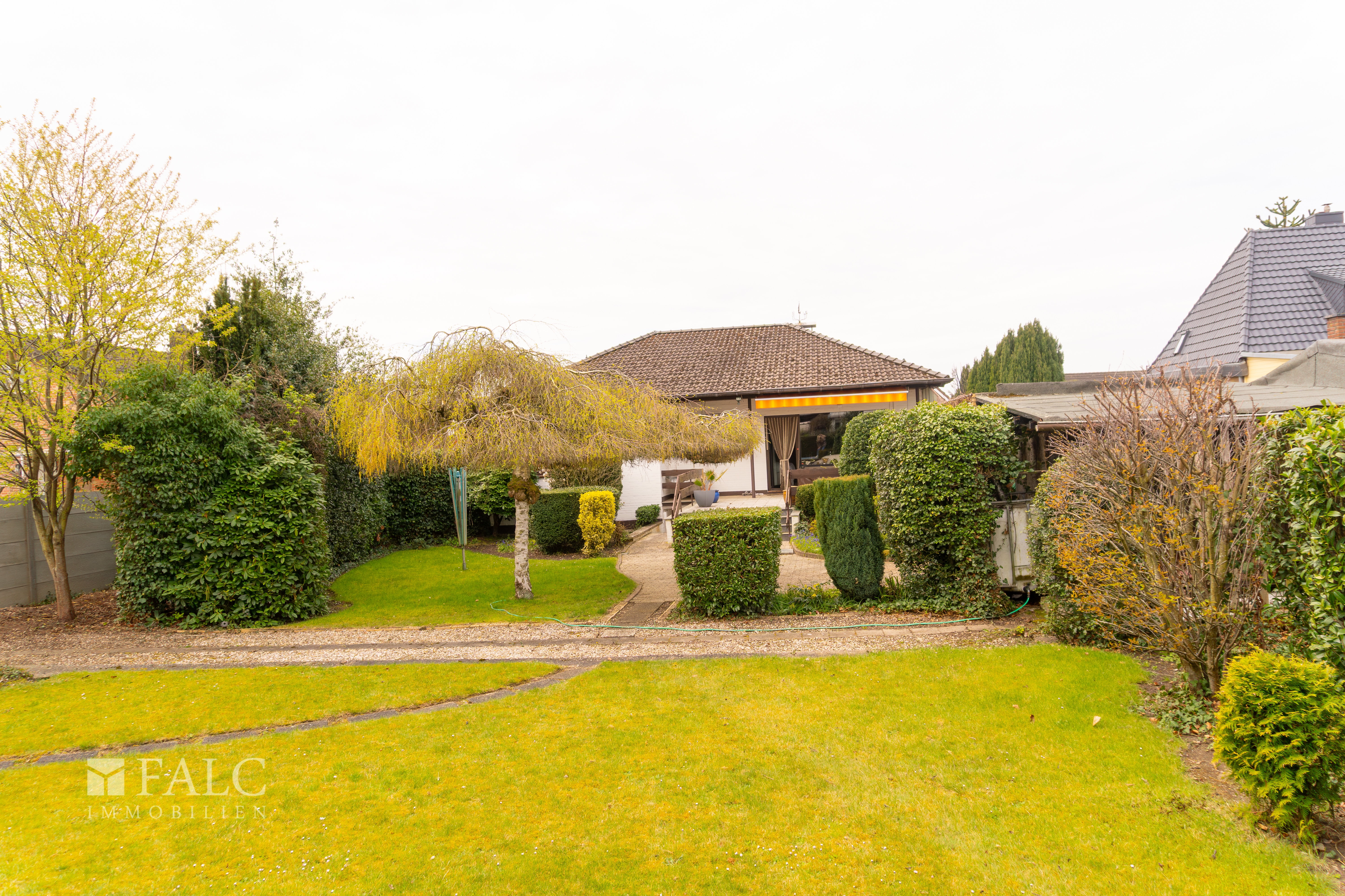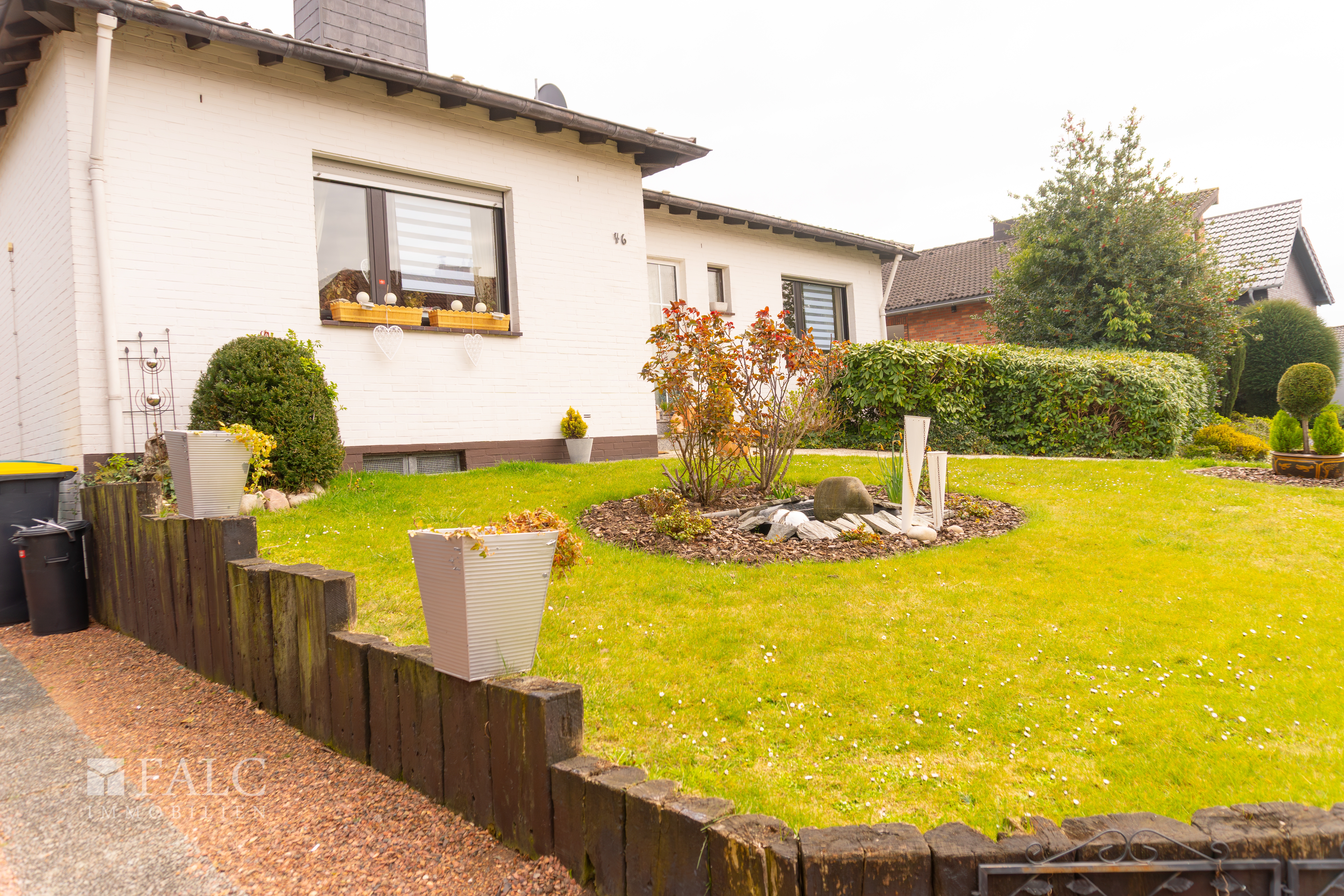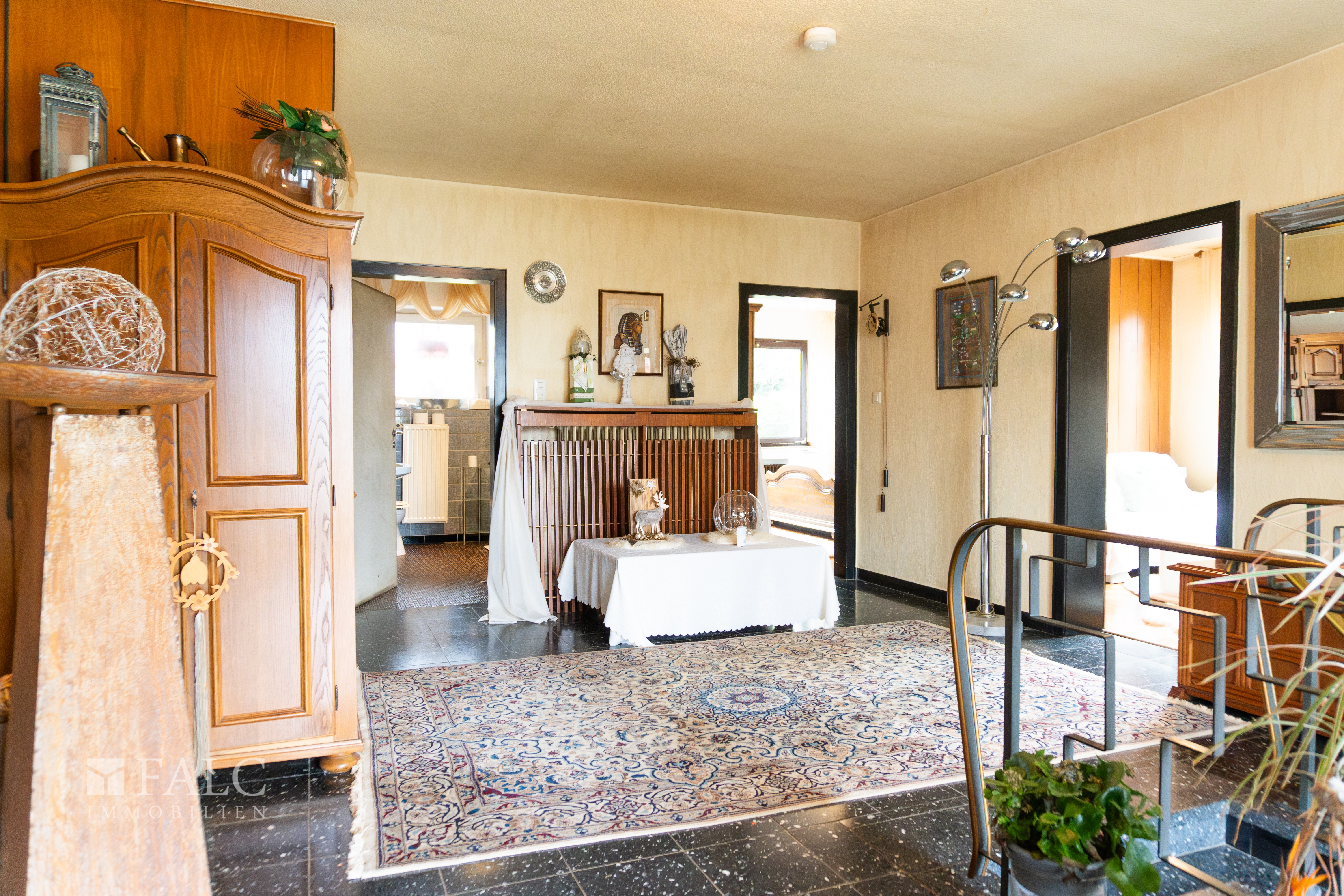 Bei dieser Immobilie handelt es sich um einen Bungalow aus dem Jahre 1965 mit einer Wohnfläche von ca. 118 m². Die Immobilie ist auf dem tollen großen Grundstück mit einer Fläche von 1289m² sehr repräsentativ. Von einem großen Dielenbereich gelangt man in die Küche, das Wohnzimmer mit angrenzendem Kamin/Esszimmer, einem Bad, dem Elternschlafzimmer, sowie zwei weiteren Räumen und einem Gäste WC. Das Haus ist vollunterkellert und bietet neben den Nutzräumen auch noch eine tolle Kellerbar.