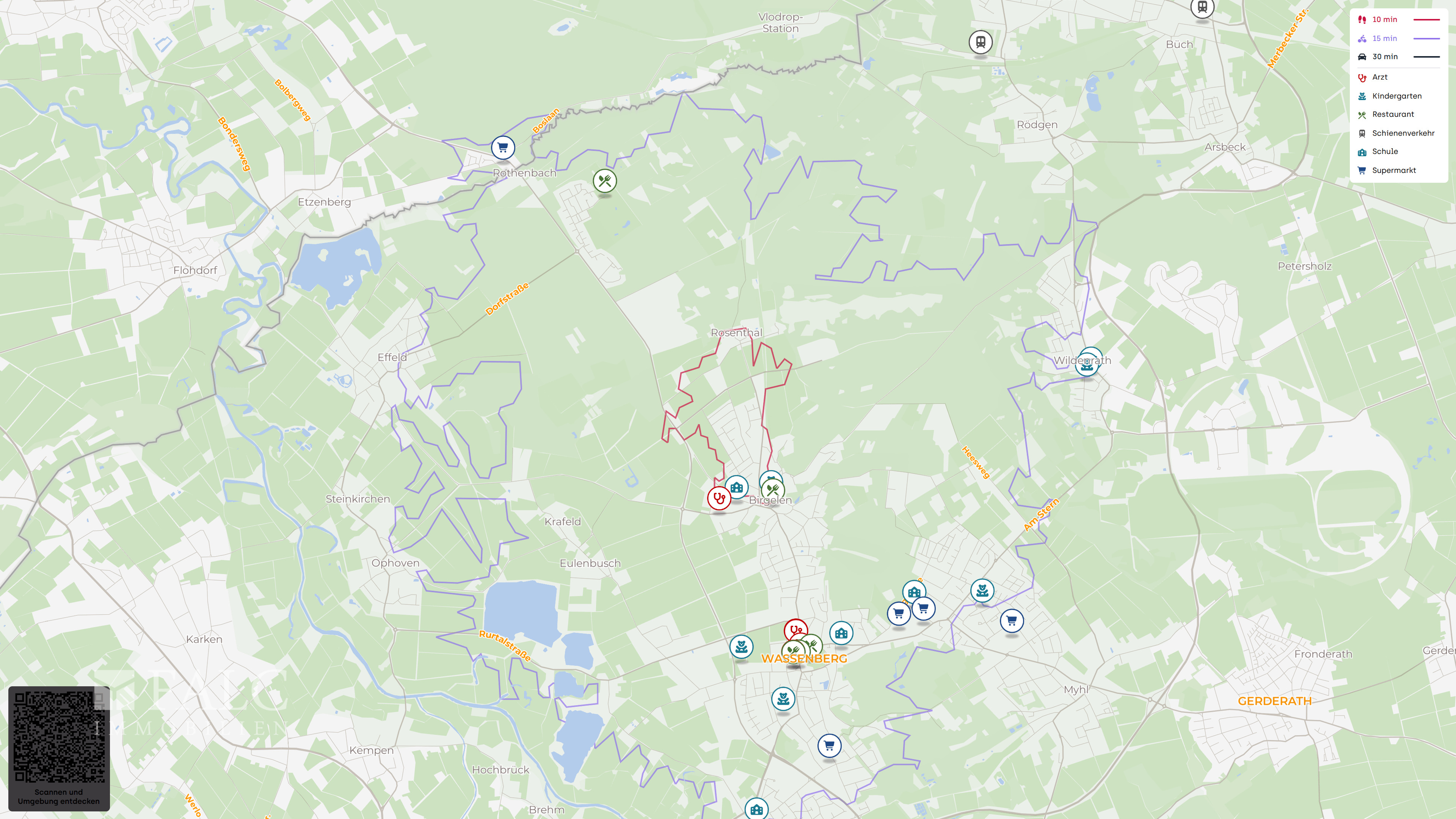 Trotz der ruhigen Lage ist eine gute Anbindung an die Infrastruktur gewährleistet. Einkaufsmöglichkeiten für den täglichen Bedarf, eine Hausarztpraxis, ein Kindergarten sowie eine Grundschule sind im Ort vorhanden oder schnell erreichbar. Weiterführende Schulen, Ärzte und ein breiteres Angebot an Geschäften befinden sich im nahegelegenen Wassenberger Stadtzentrum.