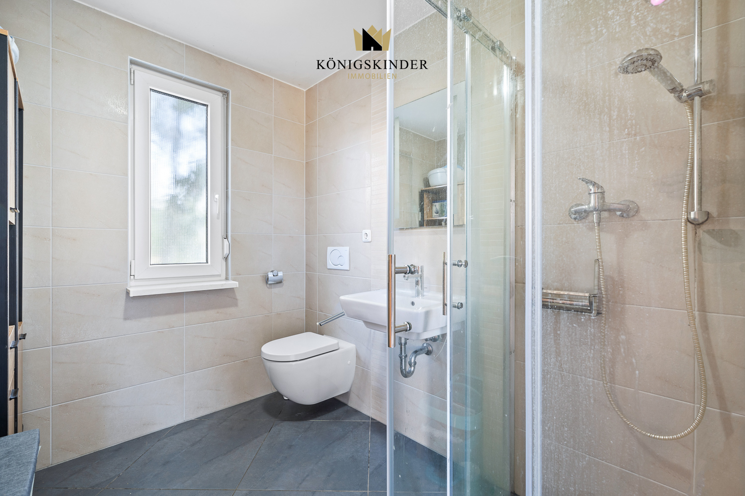 Im Flur neben dem Haupteingang ist noch eine großes Duschbad mit WC eingerichtet, was ebenso sehr praktisch ist.