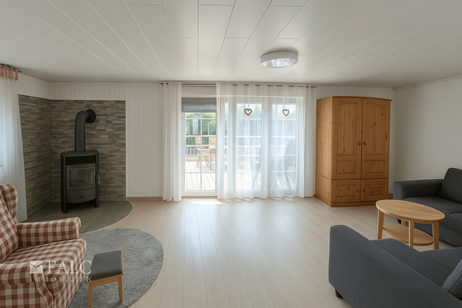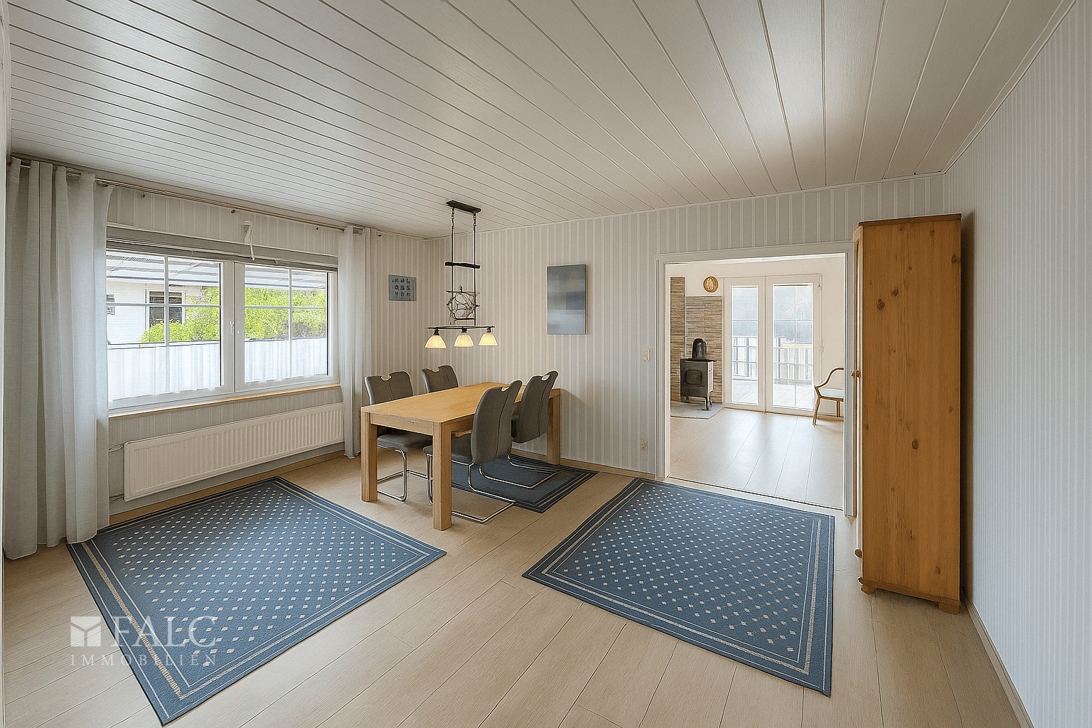Das Haus verfügt über insgesamt fünf Zimmer und eine Wohnfläche von etwa 170 m², verteilt auf zwei Etagen. Im Erdgeschoss erstreckt sich die Hauptwohnung über ca. 106 m² und bietet großzügige, lichtdurchflutete Räume sowie ein modernes Badezimmer, das 2019 vollständig erneuert wurde. Besonders hervorzuheben ist der direkte Zugang vom Wohnzimmer auf die sonnige Terrasse und in den liebevoll angelegten Garten – perfekt für entspannte Stunden im Freien oder gesellige Abende mit Familie und Freunden. Ein im Jahr 2017 realisierter Anbau erweitert das Raumangebot zusätzlich. Im Obergeschoss befindet sich eine etwa 64 m² große Einliegerwohnung mit eigener Küche, die 2023 neu eingebaut wurde. Diese Einheit eignet sich hervorragend zur Vermietung und ermöglicht es, einen Teil der Finanzierungskosten durch Mieteinnahmen zu decken.