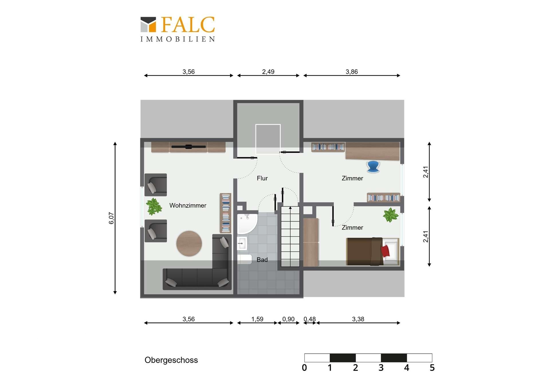 Dort angekommen gelangt man zunächst in einen kleinen Vorflur, von dem aus drei Schlafzimmer sowie ein weiteres Badezimmer mit Dusche erreichbar sind. Damit bietet die obere Etage genügend Raum für die ganze Familie.