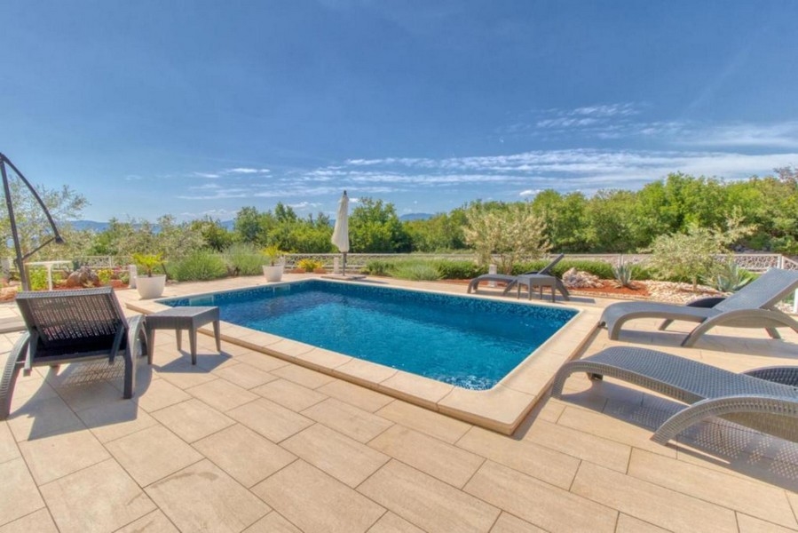Im Außenbereich gibt es einen attraktiven Swimmingpool mit Sonnenterrasse und eine Sommerküche. Zudem verfügt das Haus über eine Garage und weitere Stellplätze im Freien.
