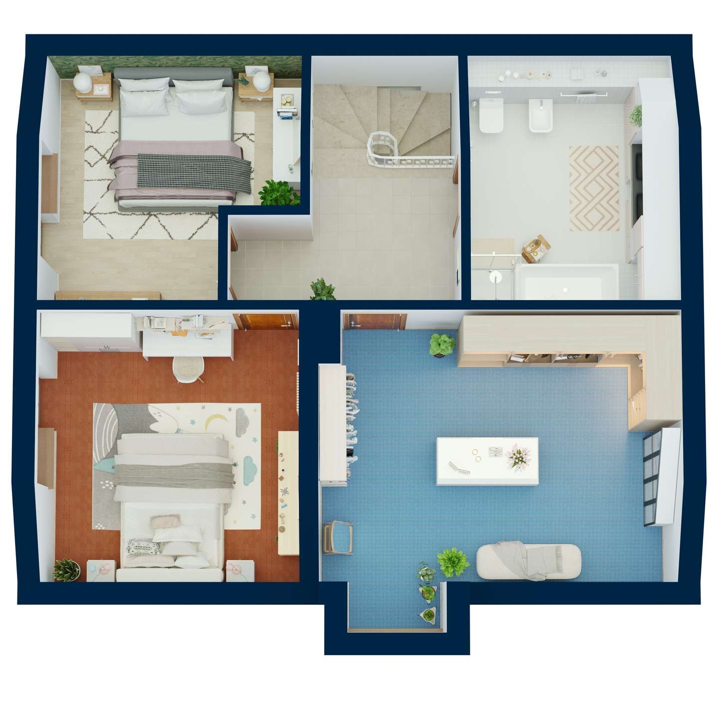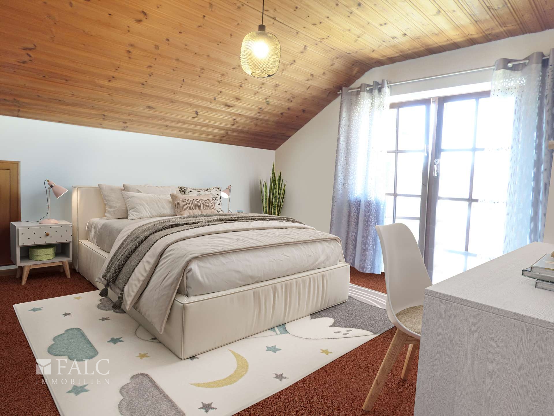Im Obergeschoss befinden sich drei Schlafzimmer, die individuell gestaltet werden können. Das Hauptschlafzimmer bietet viel Platz und Komfort. Ein weiteres Zimmer eignet sich hervorragend als Kinderzimmer oder Büro. Die Ankleide bietet zusätzlichen Stauraum und sorgt für Ordnung.