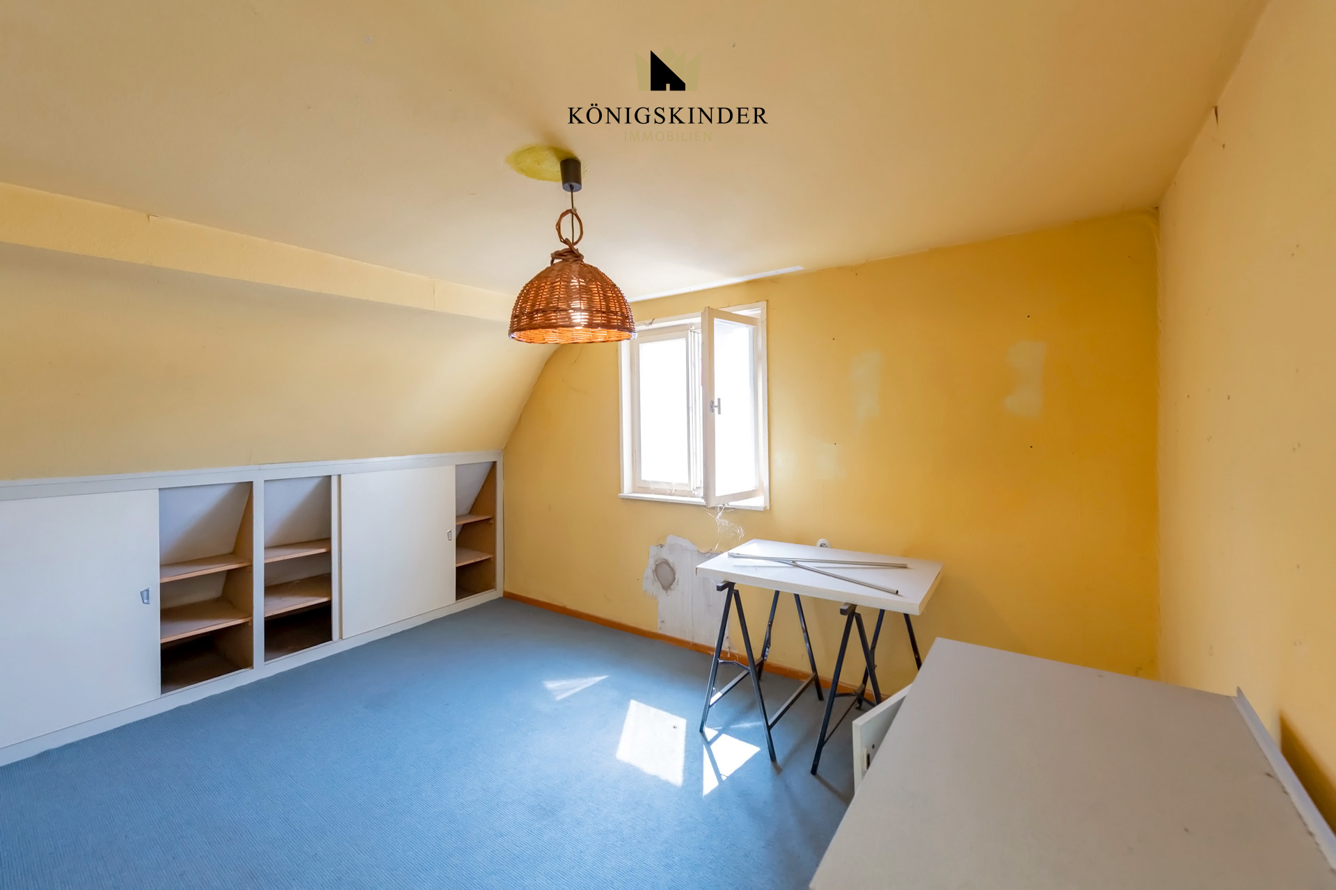Raum für Ihre Visionen Das Innere präsentiert sich weitgehend im ursprünglichen Zustand – ein seltener Ausgangspunkt für eine Sanierung nach individuellen Vorstellungen. Der historische Dachstuhl ist erhalten, lediglich das erste Dachgeschoss wurde teilweise ausgebaut. Damit eröffnet sich die Möglichkeit, Tradition und moderne Wohnideen harmonisch zu verbinden.